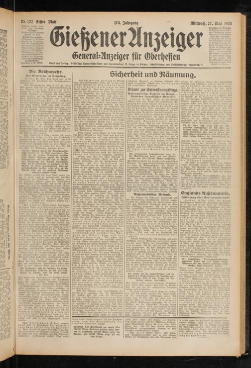 Drud und Verlag: vrühl'fche Univerfilälr Buch und Steinöruderci R. Lange in Sietzen. Schriftleitung und Geschäftsstelle: Schulstratze 7.