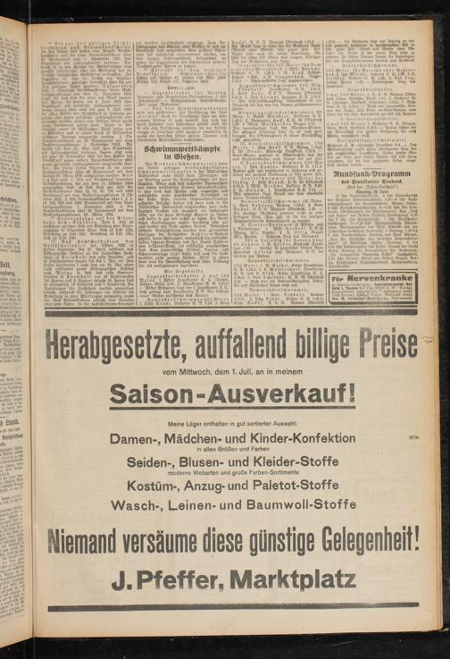 Kostüm-, Anzug-und Paletot-Stoffe Wasch-, Leinen- und Baumwoll-Stoffe Niemand versäume diese günstige Gelegenheit! J. Pfeffer, Marktplatz