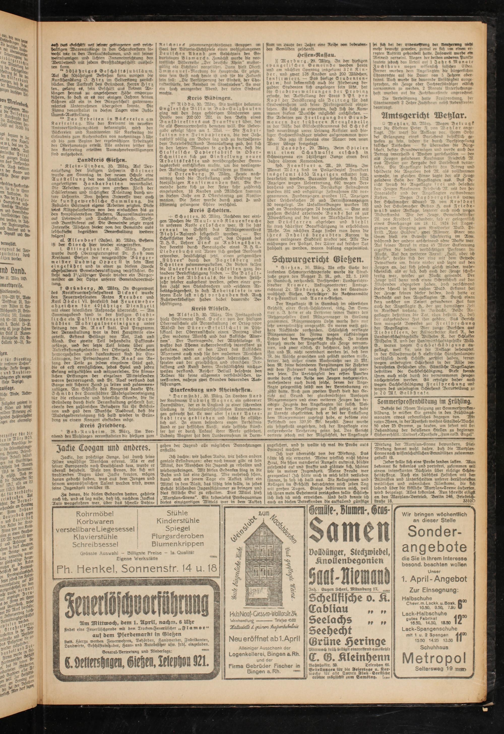 „?“ Aid da. 30. März. Die weithin bekannte Englersche Villa in Bad-Salzhausen ging mit den dazu gehörigen ßänöercien zum Preise von 200 000 Mk. in den Besitz eines Dankdirektors aus Frankfurt über, der sie als Sommerwohnfiy benutzen will. Die Heber- gäbe erfolgt schon am 1. Mai. - Die Fabrikation von Feinpapieren, die vor Jahresfrist völlig am Boden lag und zu fortwährend dem Detriebsskillstand Veranlassung gab. hat sich in den letzten Monaten so gehoben, daß die Stasfelsche Papiersabrik in Ober- Schmitten sich zur Einstellung neuer Arbeitskräfte und vorübergehender Svnn- tagsorbeit entschließen muhte, um die vorliegenden Aufträge rechtzeitig ausführen zu können.