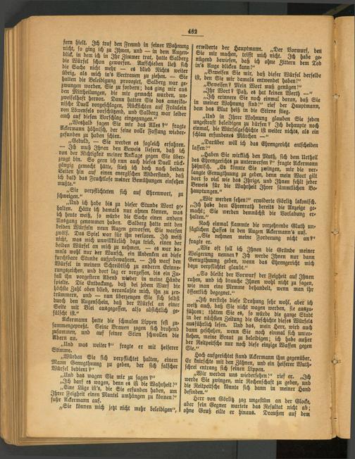 fe S rt: ^fras den Freund in seiner Wohnung b irt'in hSzu Ihnen, und — in dem Augen. { Ü dem ich in Ihr Zimmer trat, hatte Salberg S SÜIfe 9on geworfen. Aufschieben ließ sich urehr - es blieb Nichts weiter batt?n SÄ.,nä Vertrauen zu ziehen. - Sie hatten dre Beleidigung provozirt, Salberg war ae. zwungen worden, Sie zu fordern; das ging mir aus im^s^"heikungen, die mir gemacht wurden, un. zwetfelhaft hervor. Dann hatten Sie da« amerika. ^«?^^°rg-schlagm, Rücksichten auf Fräulein von Löwenfels vorschützend, und Salberg war leider auch auf die en Vorschlag eingegangen." ‘