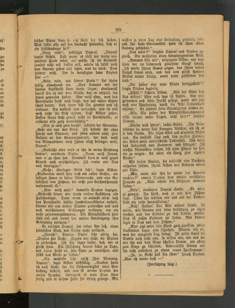 „Hihihi!" kicherte Niston. „Wie der Geier das Aas wittert! Aber noch sage ich Nichts. Nur nut- gekommen und keine Furcht gehegt, wenn wir jetzt noch eine Wanderung durch die "stille Todtenstadt nehmen." Er zündete seine Blendlaterne wieder an.