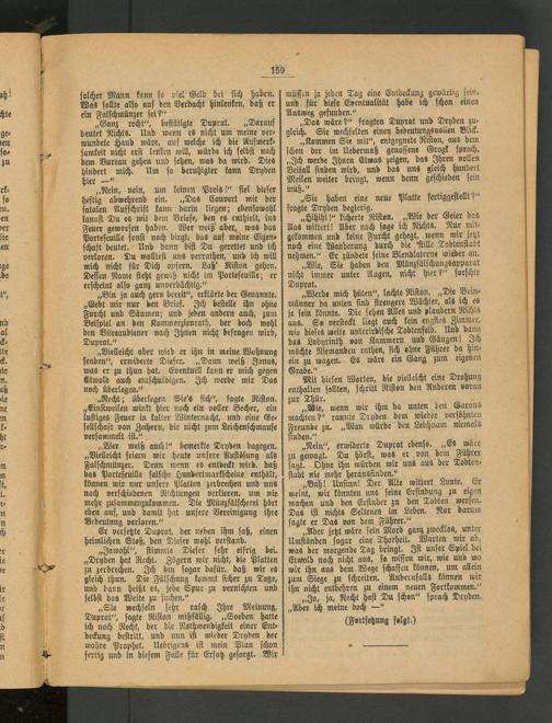 „Ganz recht", bestätigte Duprat. „Darauf deutet Nichts. Und wenn es nicht um meine verwundete Hand wäre, auf welche ich die Aufmerksamkeit nicht erst lenken will, würde ich selbst nach dem Bureau gehen und sehen, was da wird. Dies hindert mich. Um so beruhigter kann Dryden hier —"