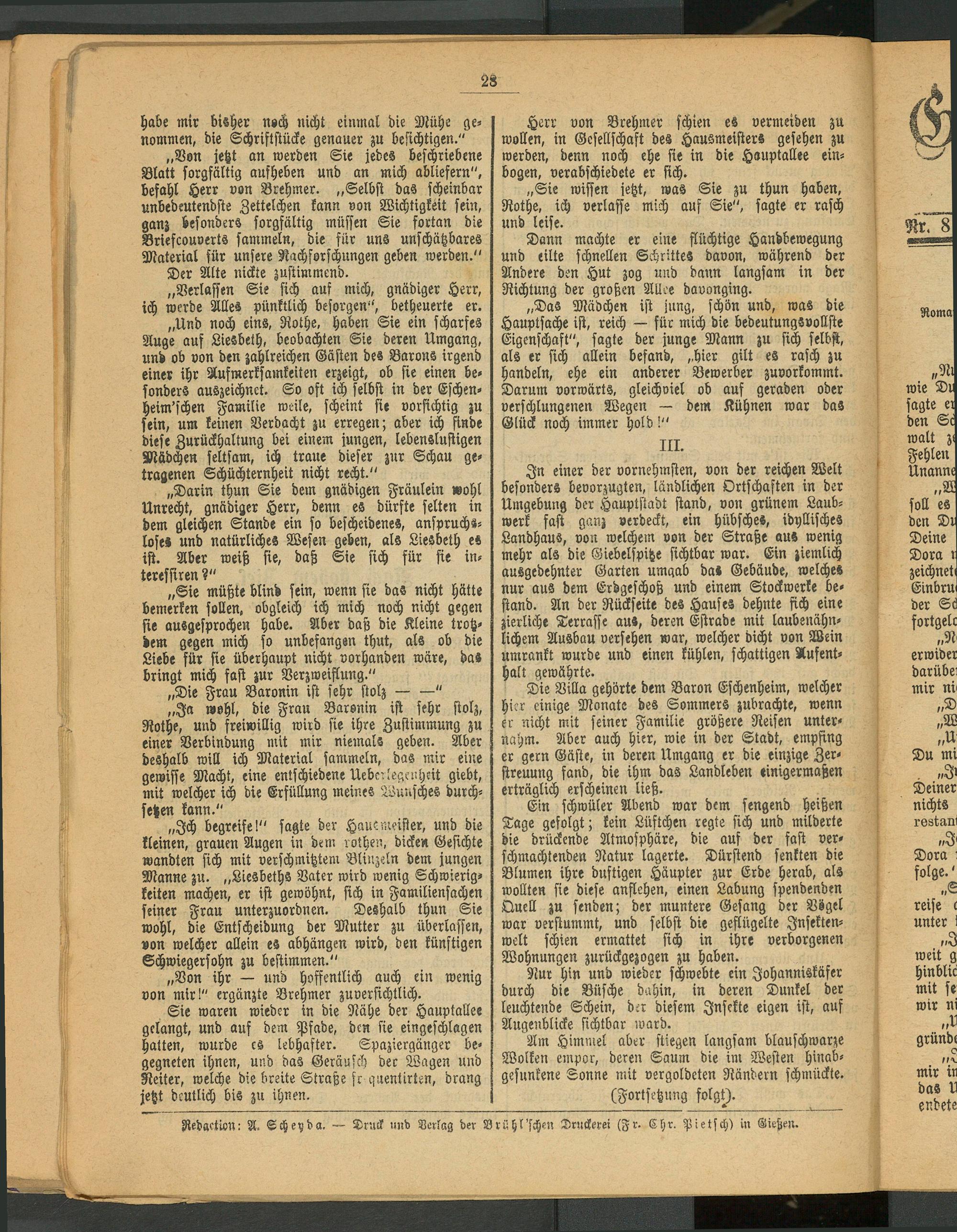 Mdaction: A. Scheyda. — Druck und Verlag der Brüht'scheu Druckerei (Fr. Chr. Pietsch) in Gieße».