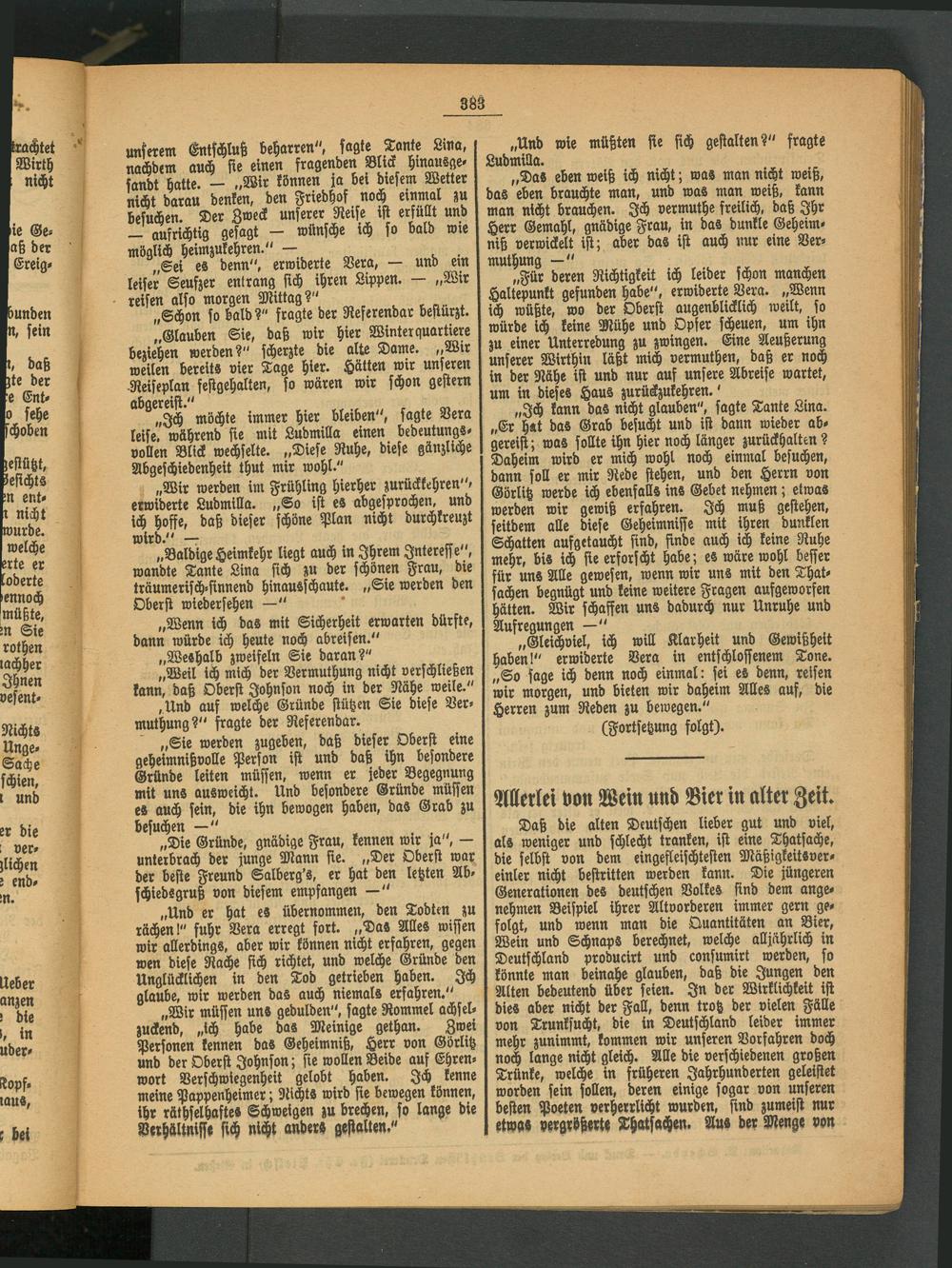 „Gleichviel, ich will Klarheit und Gewißheit haben!" erwiderte Vera in entschloffenem Tone. „So sage ich denn noch einmal: sei es denn, reisen wir morgen, und bieten wir daheim Alles auf, die Herren zum Reden zu bewegen."