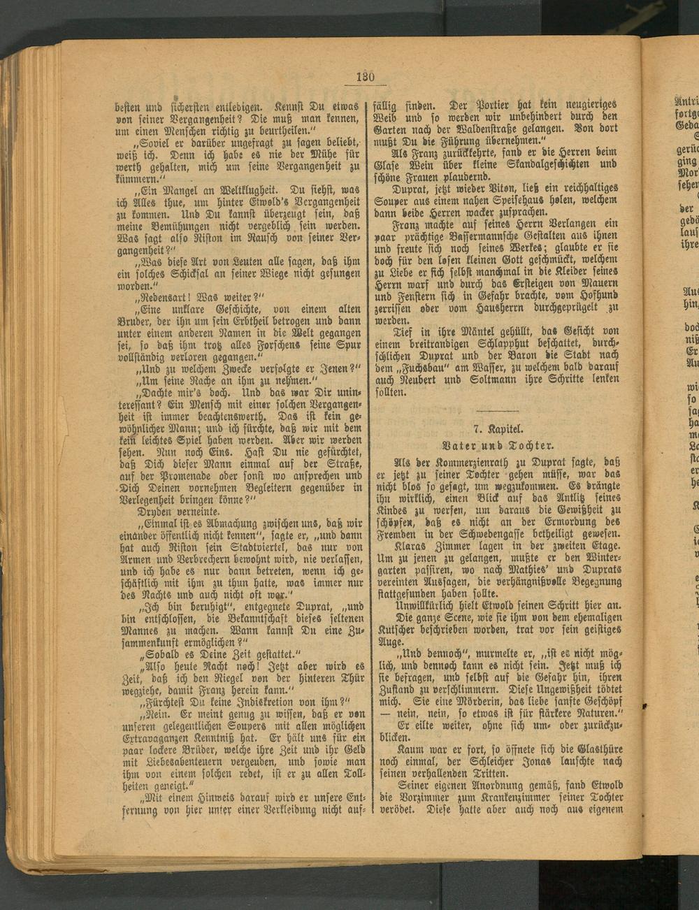 Als der Kommerzienrath zu Duprat sagte, daß er jetzt zu feiner Tochter gehen müsse, war das nicht blos so gesagt, um wegzukommen. Es drängte ihn wirklich, einen Blick auf das Antlitz seines Kindes zu werfen, um daraus die Gewißheit zu schöpfe«, daß es nicht an der Ermordung des Fremden in der Schwedengasse betheiligt gewesen.