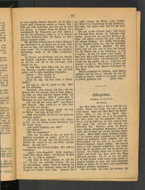Im Begriff, von der Straße nach dem Vorplatz des Theaters einzubiegen, tönte plötzlich ihr Name an ihr Ohr, und als sie sich umwandie, stand Eduard vor ihr.