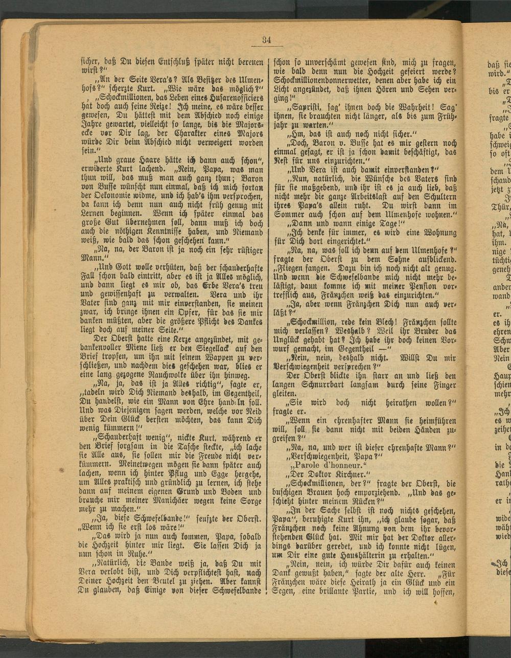 „Und Gott wolle verhüten, daß der schauderhafte Fall schon bald eintritt, aber es ist ja Alles möglich, und dann liegt es mir ob, das Erbe Vera's treu und gewissenhaft zu verwalten. Vera und ihr Vater sind ganz mit mir einverstanden, sie meinen zwar, ich bringe ihnen ein Opfer, für das sie mir danken müßten, aber die größere Pflicht des Dankes liegt doch auf meiner Seite."