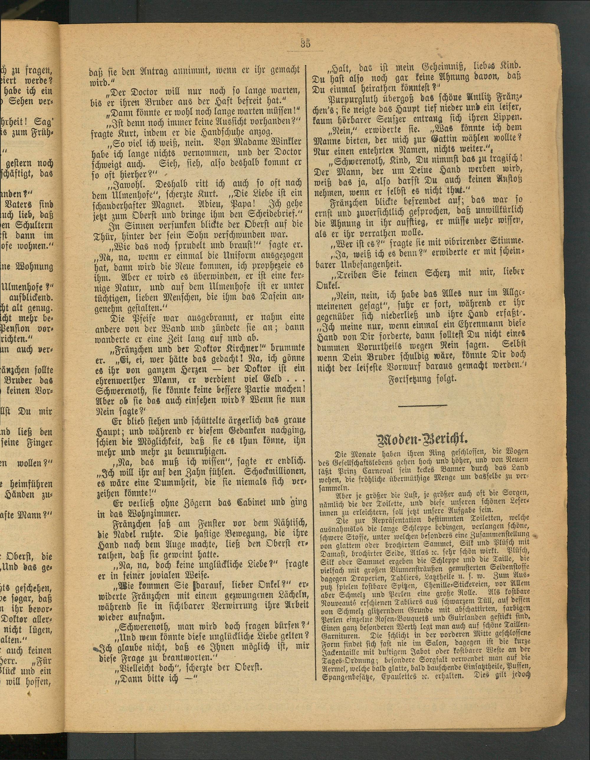 „Schwerenoth, Kind, Du nimmst das zu tragisch! Der Mann, der um Deine Hand werben wird, weiß das ja, also darfst Du auch keinen Anstoß nehmen, wenn er selbst es nicht thnt."