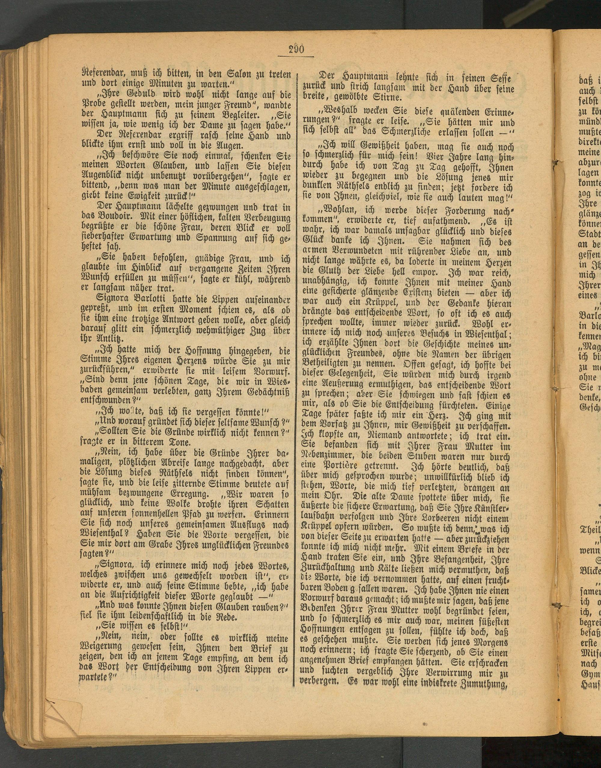 „Signora, ich erinnere mich noch jedes Wortes, welches zwischen uns gewechselt worden ist", erwiderte er, und auch seine Stimme bebte, „ich habe an die Aufrichtigkeit dieser Worte geglaubt —"