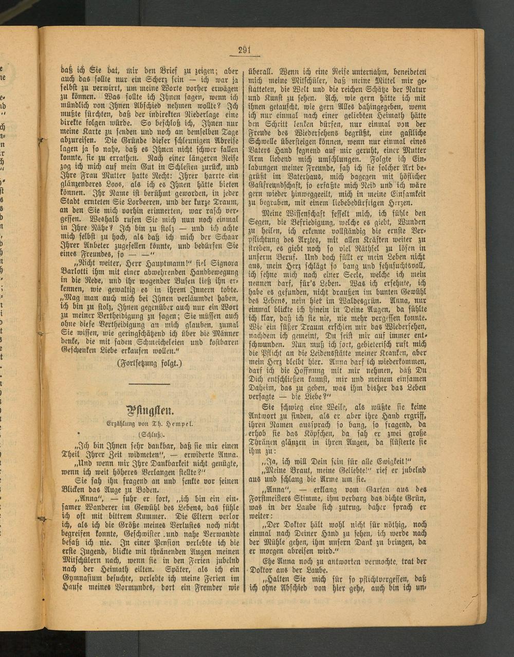 „Der Doktor hält wohl nicht für nöthig, noch einmal nach Deiner Hand zu fehen, ich werde nach der Mühle gehen, ihm unfern Dank zu bringen, da er morgen abreifen wird."