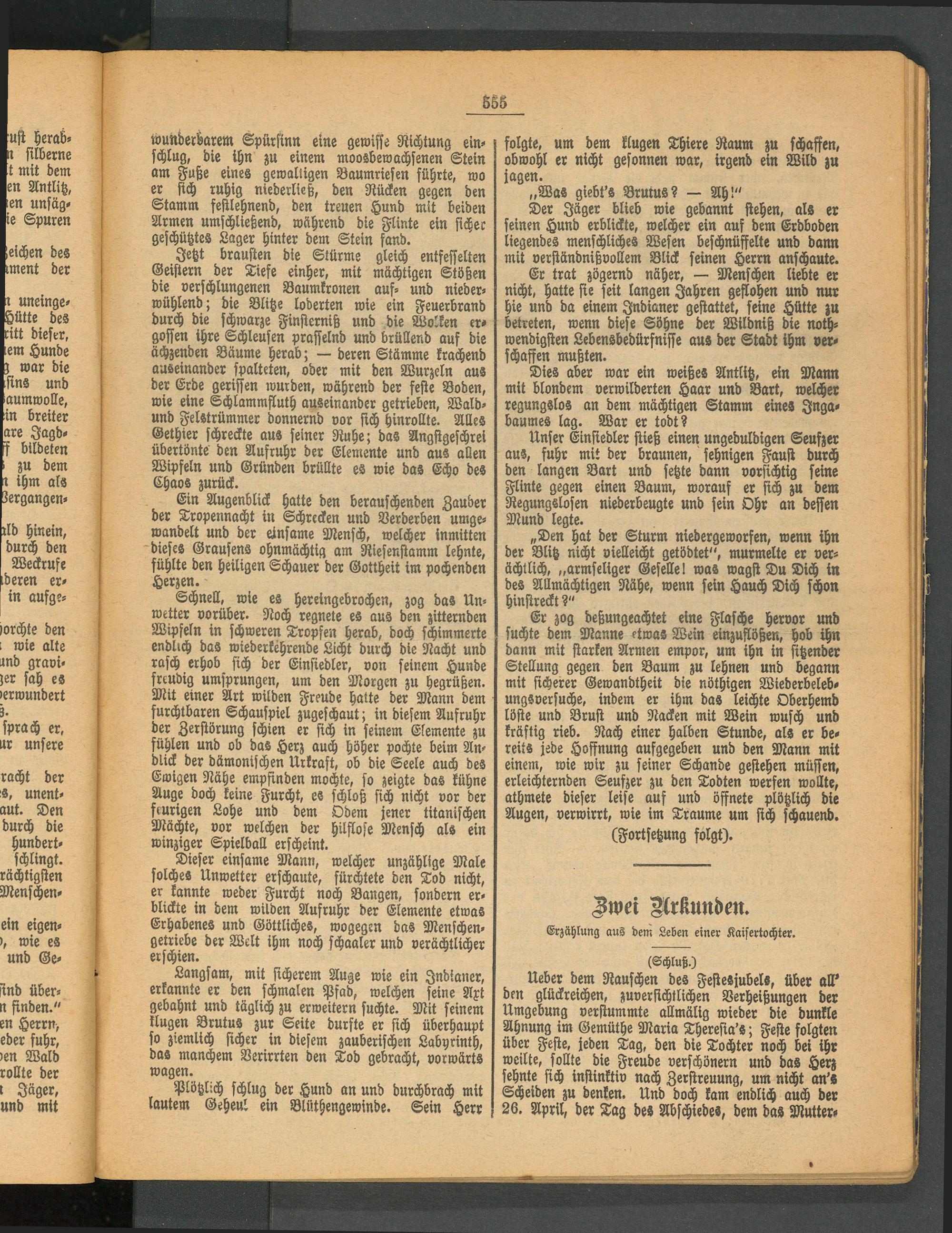 „Den hat der Sturm niedergeworfen, wenn ihn der Blitz nicht vielleicht getödtet", murmelte er verächtlich, „armseliger Geselle! was wagst Du Dich in des Allmächtigen Nähe, wenn sein Hauch Dich schon hinstreckt?"