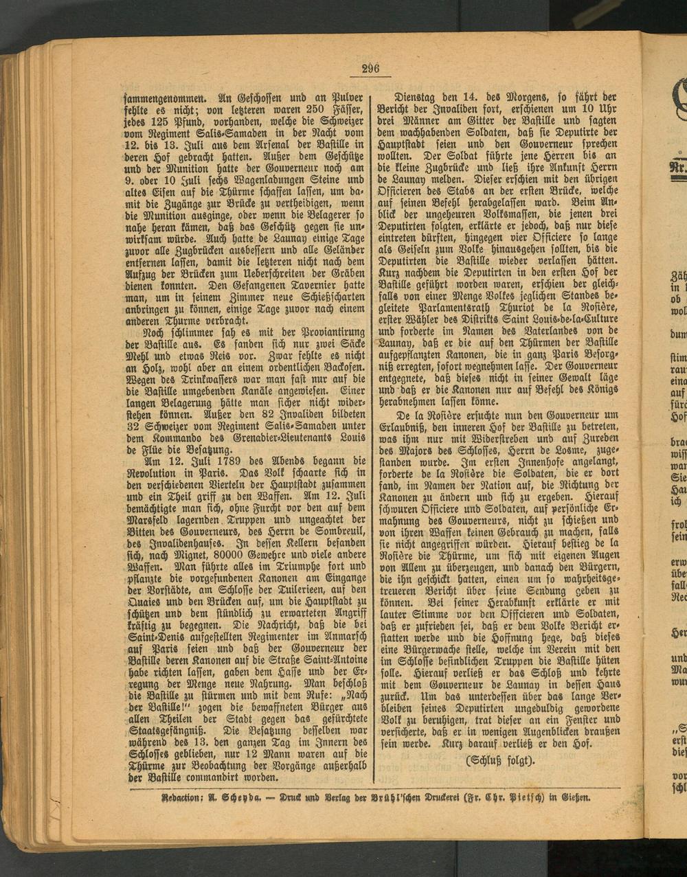 Redaktion; A. Schetzda. — Druck und Verlag der Brühl'schen Druckerei (Fr. Ehr. Pietsch) in Gießen.