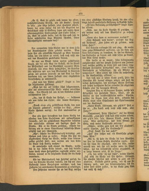 „Durch einen eckig geschliffenen Dolch, den man am Thatort gefunden", versetzte der Arzt, „edlere Theil, scheinen verletzt, der Tod unabwendbar zu fein."