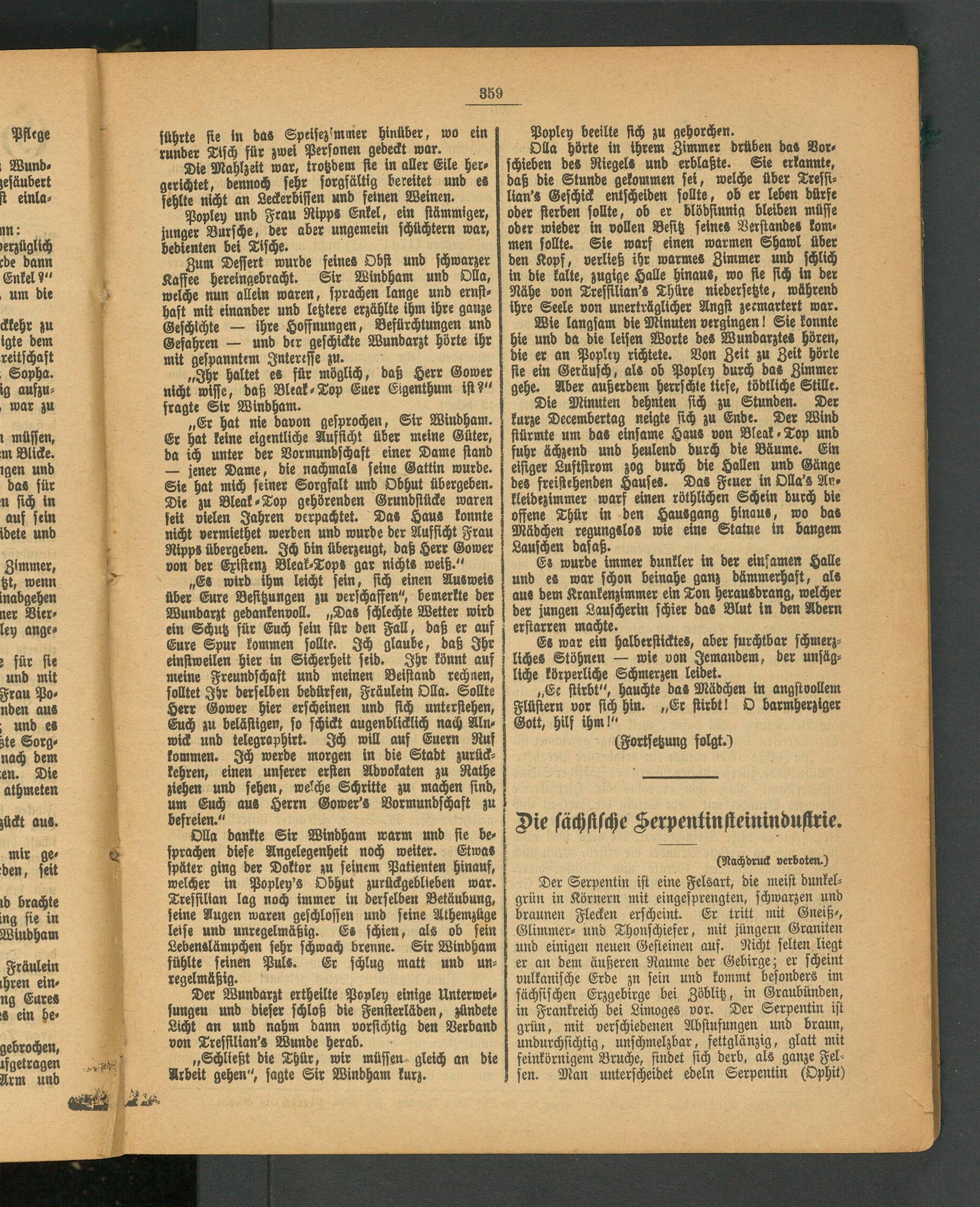 Zum Dessert wurde feines Obst und schwarzer Kaffee hereingebracht. Sir Windham und Olla, welche nun allein waren, sprachen lange und ernsthaft mit einander und letztere erzählte ihm ihre ganze Geschichte — ihre Hoffnungen, Befürchtungen und Gefahren — und der geschickte Wundarzt hörte ihr mit gespanntem Interesse zu.