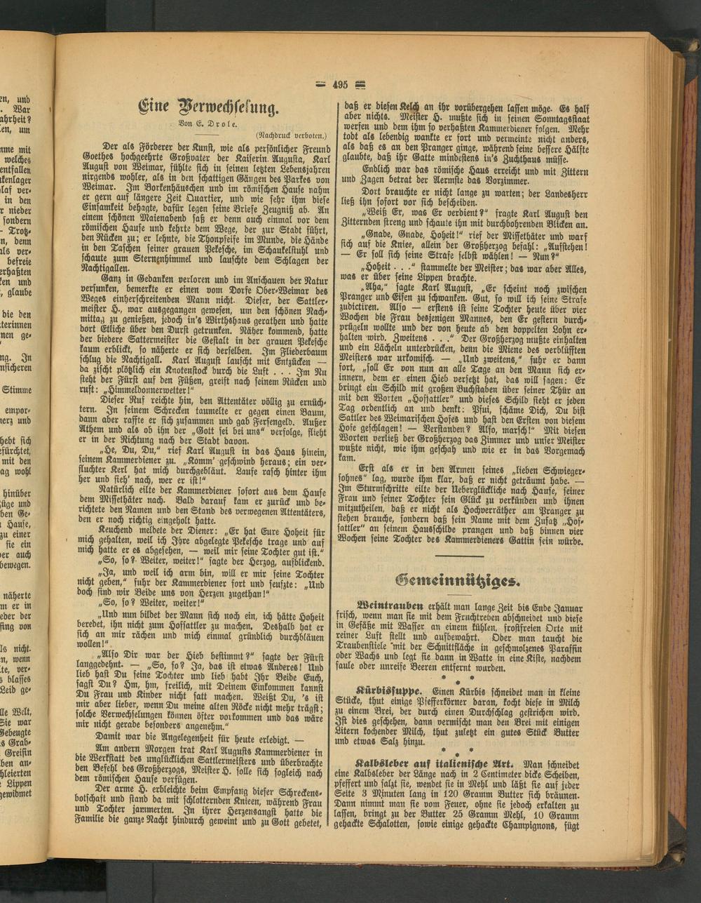 „He, Du, Du," rief Karl August in das Haus hinein, ?*u6te nid^ wie ihm geschah und wie er in das Vorgemach seinem Kammerdiener zu. „Komm' geschwind heraus; ein ver« tam* Q f
