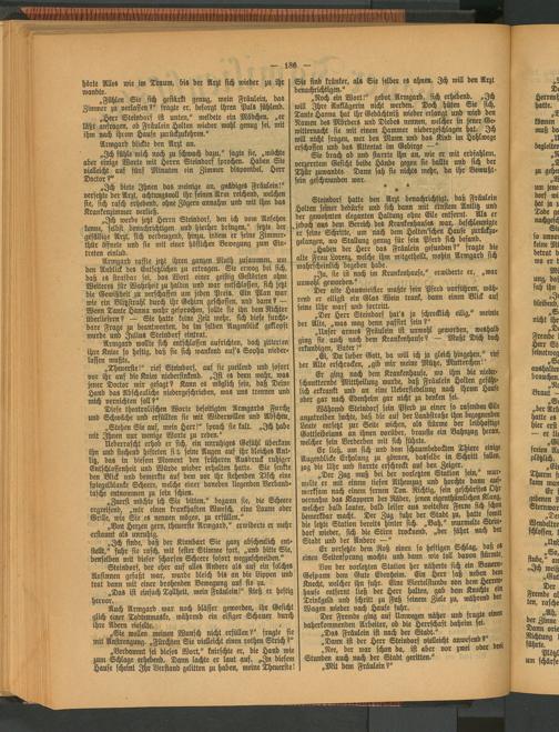 „Ich werde jetzt Herrn Steindorf, den ich vom Ansehen kenne, selbst benachrichtigen und hierher bringen," fetzte der gefällige Arzt, sich verbeugend, hinzu, indem er seine Zimmer- thür öffnete und sie mit einer höflichen Bewegung zum Eintreten einlud.