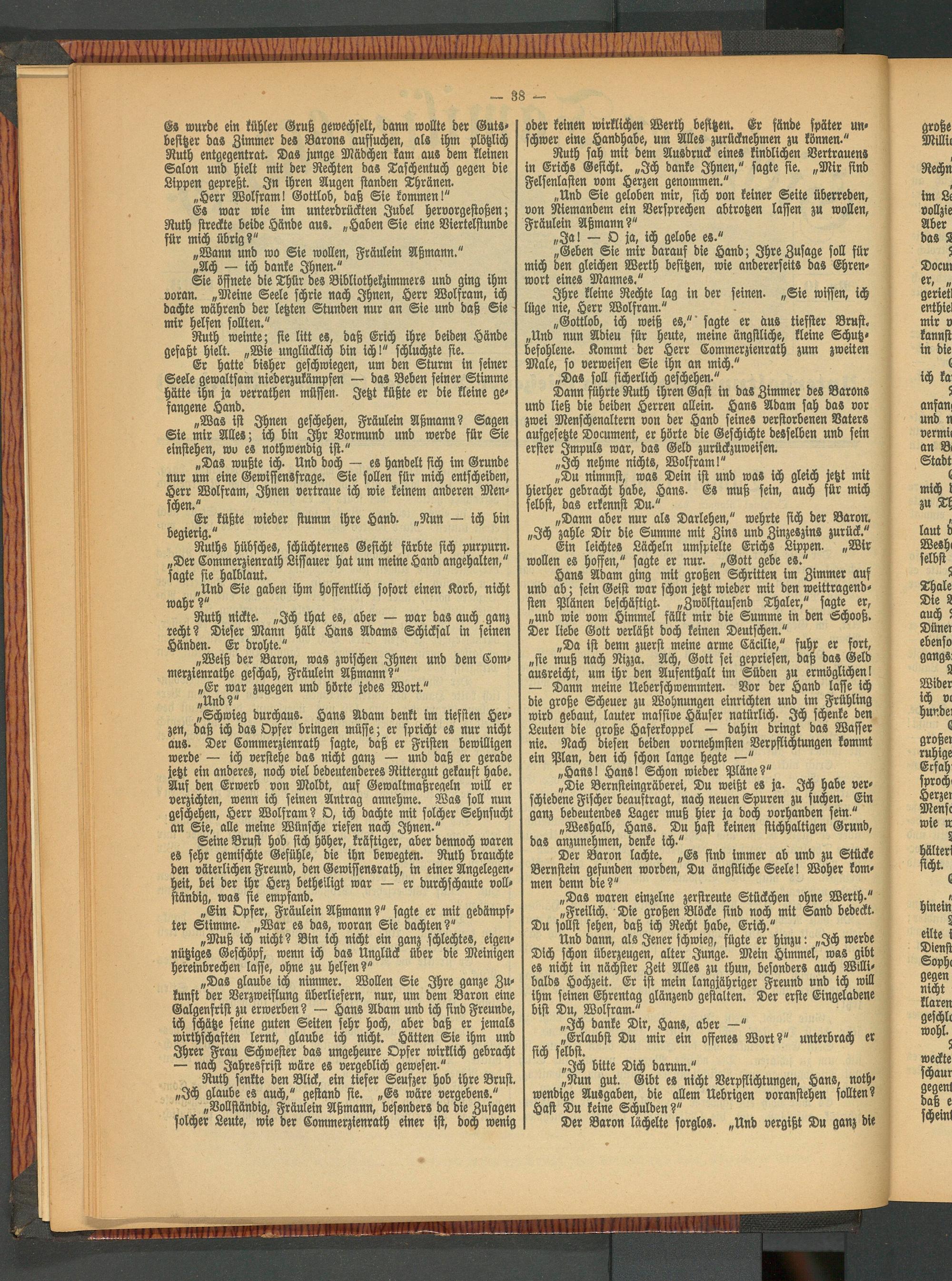 Dann führte Ruth ihren Gast in das Zimmer des Barons und ließ die beiden Herren allein. Hans Adam sah das vor zwei Menschenaltern von der Hand seines verstorbenen Vaters aufgesetzte Document, er hörte die Geschichte desselben und sein erster Impuls war, das Geld zurückzuweisen.