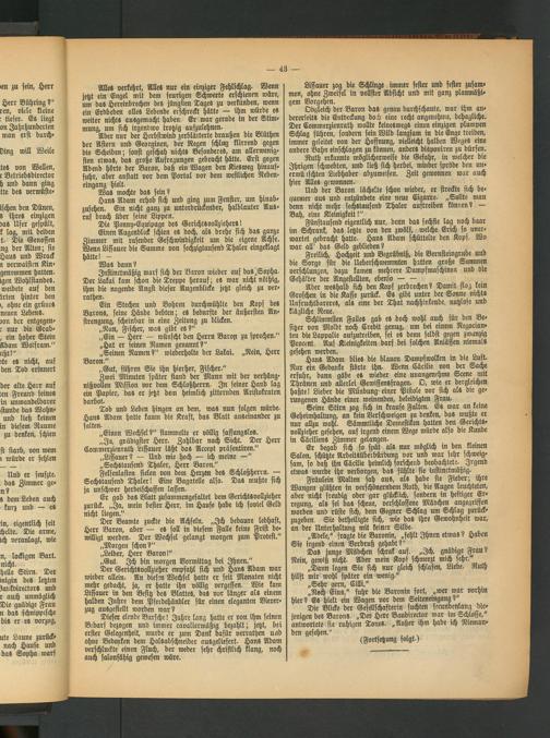 Jnstinctmäßig warf sich der Baron wieder auf das.Sopha. Der Lakai kam schon die Treppe herauf; es war nicht nölhig, ihm die nagende Angst dieser Augenblicke jetzt gleich zu ver- rathen.