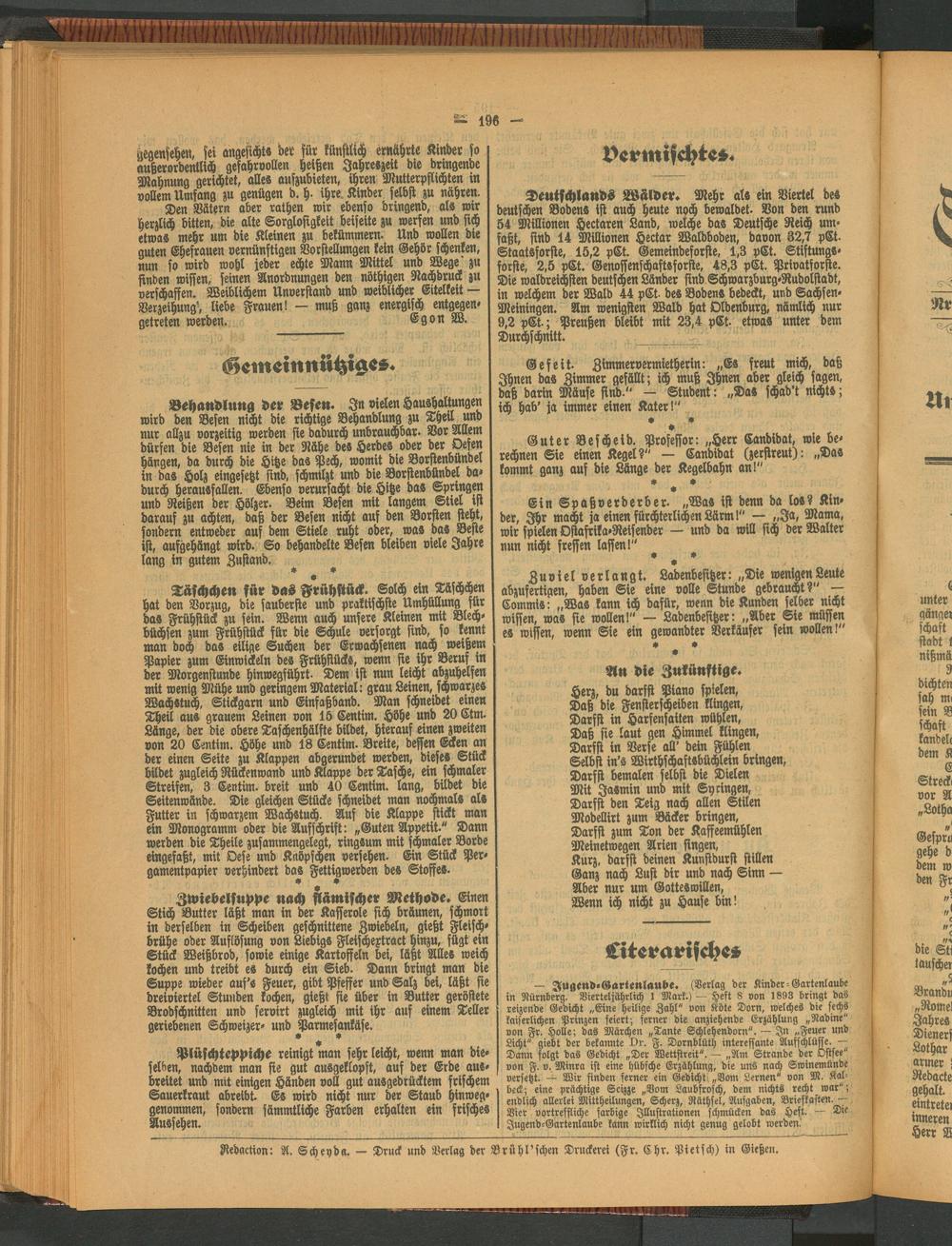 Redaction: A. Scheyda. — Druck und Verlag der Brühl'schen Druckerei (Fr. Chr. Pietsch) in Gießen.