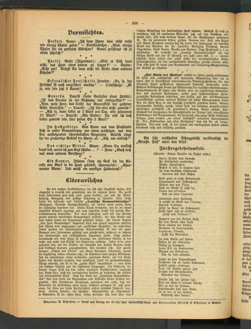 Ein sehr ernsthaftes Scherzgedicht veröffentlicht die „Straßb. Post" unter dem Titel: