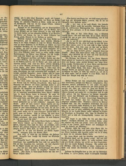 „Ah — der; nun, er hat wohl Grund, sein Interesse für unsere Tochter macht ihn parteiisch. Uebrigen« könnte er uns ein willkommener Schwiegersohn sein. Unsere Elisabeth wäre als Frau geborgen, er ist ein braver Offizier und hat Vermögen."