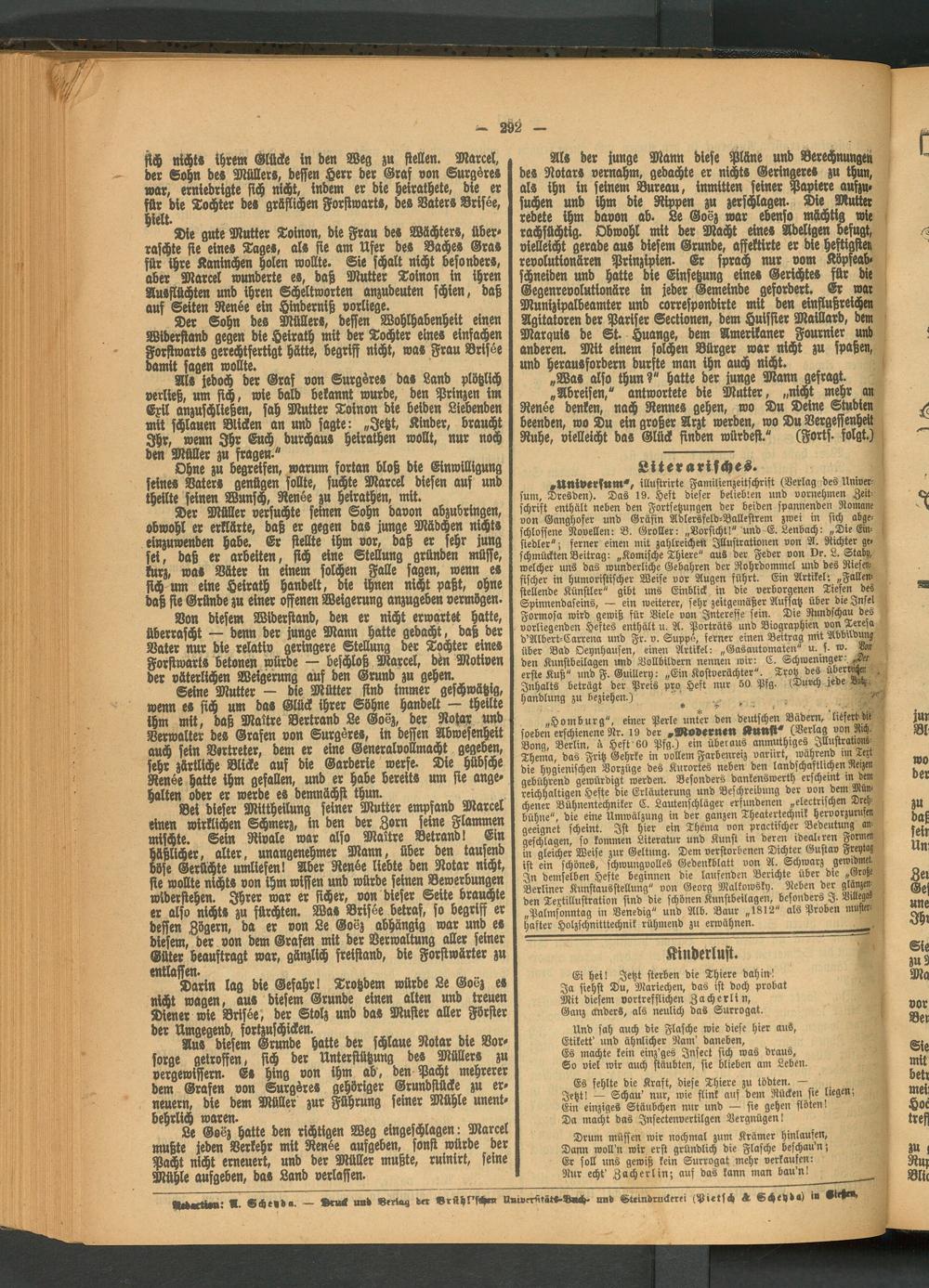 ftch nichts ihrem Glücke in den Weg zu stellen. Marcel, der Sohn der Müllers, dessen Herr der Graf von Surgsre« «ar, erniedrigte sich nicht, indem er die heirathete, die er für die Tochter der gräflichen Forstwartr, de» Vaters Brisse, hielt.