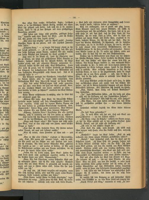 „Also sind meine Besürchiungen doch wahr geworden, man hat Ihre reine Seele mit Haß und Groll getränkt, Nora, um eine verjährte Schuld von neuem aufleben zu laffen — statt dieselbe in Liebe zu sühnen?" erwiderte der Graf Wilden»