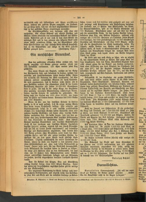 Von einem Staate wie England, welches an der Spitze des Welthandels steht, und besonders in London, welches das politische und Handeli'Centrum dieses Landes bildet, finden wir natürlich alle Nationen der Welt repräfentirt, bei Ein» wohnern anderer europäischer Staaten oft durch Tausende. Es wird angenommen, daß in London mehr Juden als in ganz Palästina wohnen. Im allgemeinen jedoch ist die fremde Bevölkerung Englands mit seinen 25 000 000 Einwohnern keine so große, als daß sie die ewige Klage der Engländer über unmäßig vermehrte Einwanderung rechtfertigen könnte. Unsere deutsche Colonie ist natürlich die zahlreichste. Sie betrug nach dem Census von 1891 circa 50000, von denen etwa die Hälfte auf London kommt. Darunter find 2000 Bäcker und 1700 Schneider.