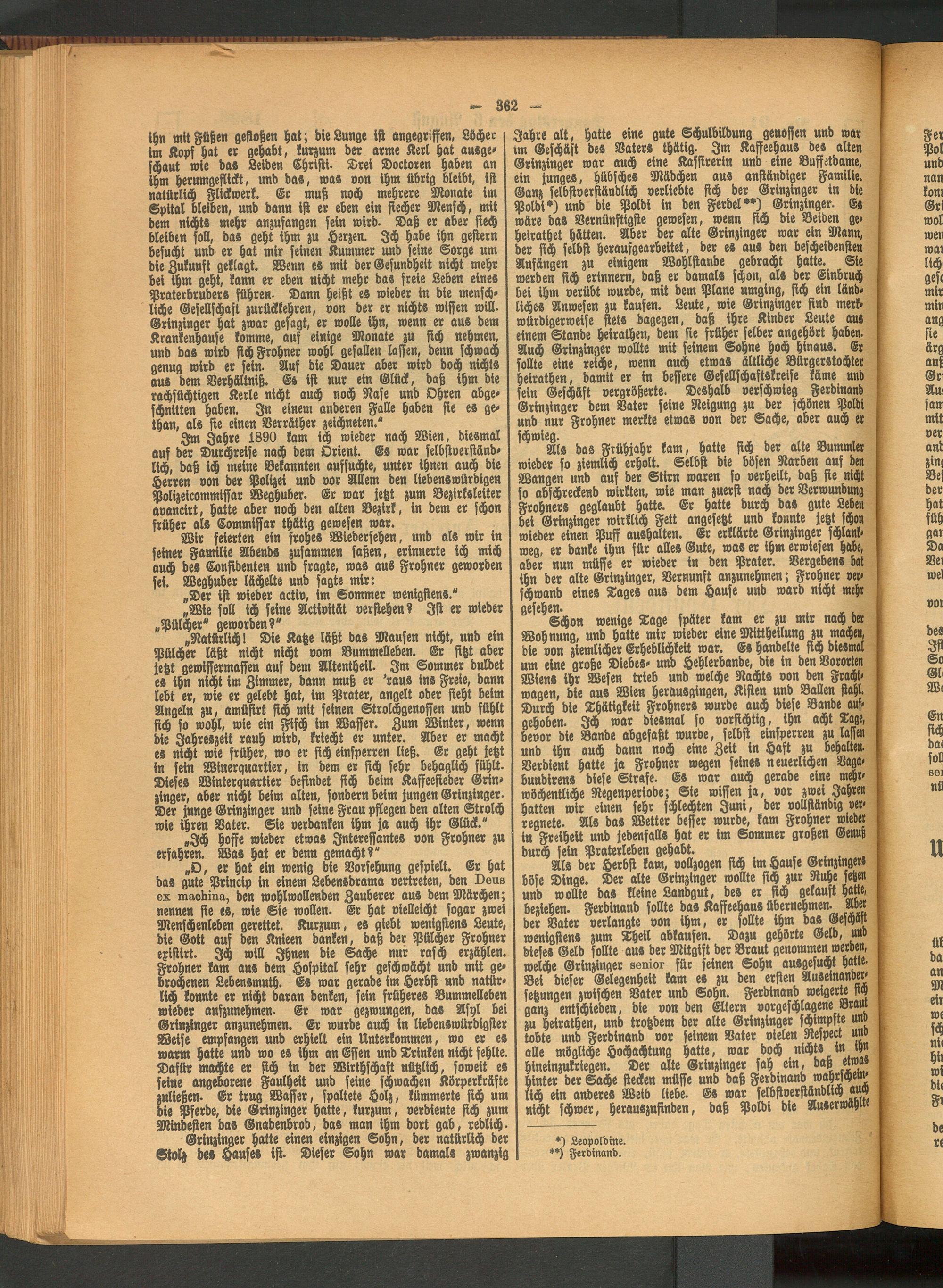 Im Jahre 1890 kam ich wieder nach Wien, diesmal auf der Durchreise nach dem Orient. Es war selbstverständlich, daß ich meine Bekannten aufsuchte, unter ihnen auch die Herren von der Polizei und vor Allem den liebenswürdigen Polizeicommiflar Weghuber. Er war jetzt zum Bszirkrleiter avancirt, hatte aber noch den alten Bezirk, in dem er schon früher als Commiffar thätig gewesen war.