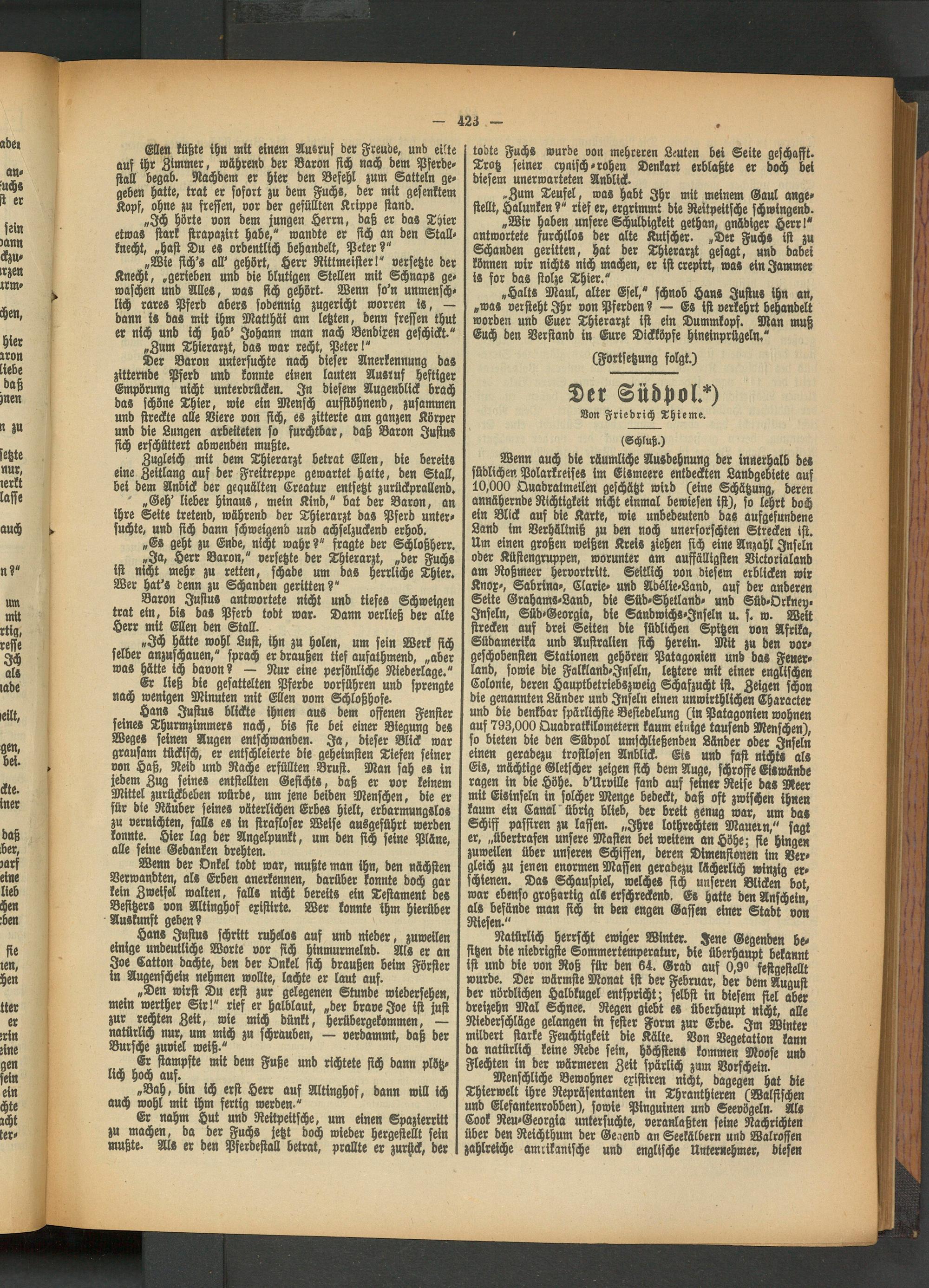 Zugleich mit dem Thierarzt betrat Ellen, die bereits eine Zeitlang auf der Freitreppe gewartet hatte, den Stall, bei dem Anbick der gequälten Creatur entsetzt zurückprallend.