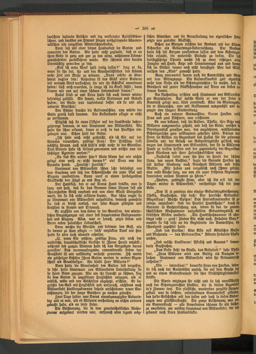 Der Handkuß, den er auf Doras Hand drückte, war so lang und heiß, daß sie das Brennen seiner Lippen fast als schmerzhaften Stich empfand und von einer Gluth übergossen ward, die sie sich nicht erklären konnte. Nur scheu wagte sie zu Lieutenant von Mülverstedt aufzublicken, dennoch gewahrte sie, daß er bleich aussah, nur seine Bugen glänzten und strahlten in Freude und Triumph.