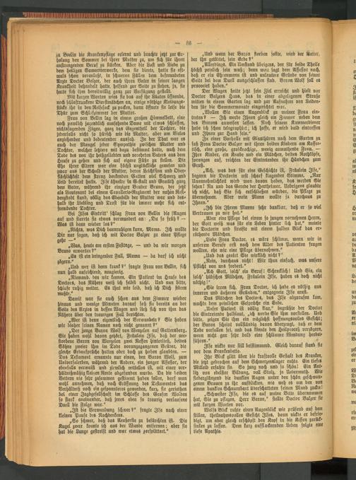 M Berlin vis Krankenpflege erlernt und brachte jetzt zur Er« holung den Sommer bet ihrer Mutter zu, um sich für ihren anstrengenden Beruf zu stärken. Aber die Lust und Liebe zu dem heiligen Samariterwerke, dem sie diente, hatte sie oftmals schon veranlaßt, in schweren Fällen dem befreundeten Arzte Doctor Balzer, der auch ihren Vater in seiner langen Krankheit behandelt hatte, helfend zur Seite zu stehen, ja, ste hatte sich ihm bereitwillig ganz zur Verfügung gestellt.