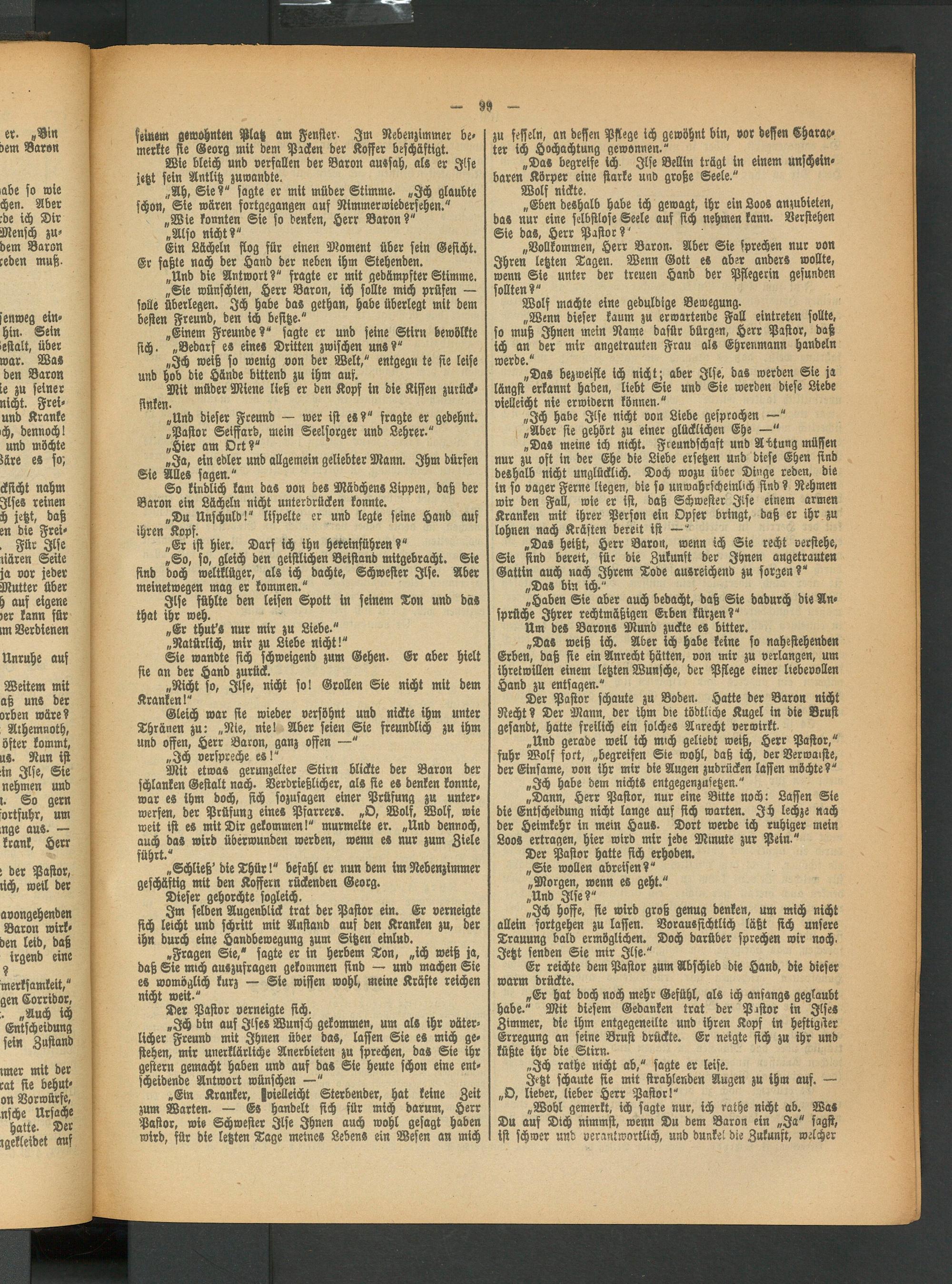 „Eben deshalb habe ich gewagt, ihr ein Loos anzubieten, das nur eine selbstlose Seele auf sich nehmen kann. Verstehen Sie da«, Herr Pastor? '