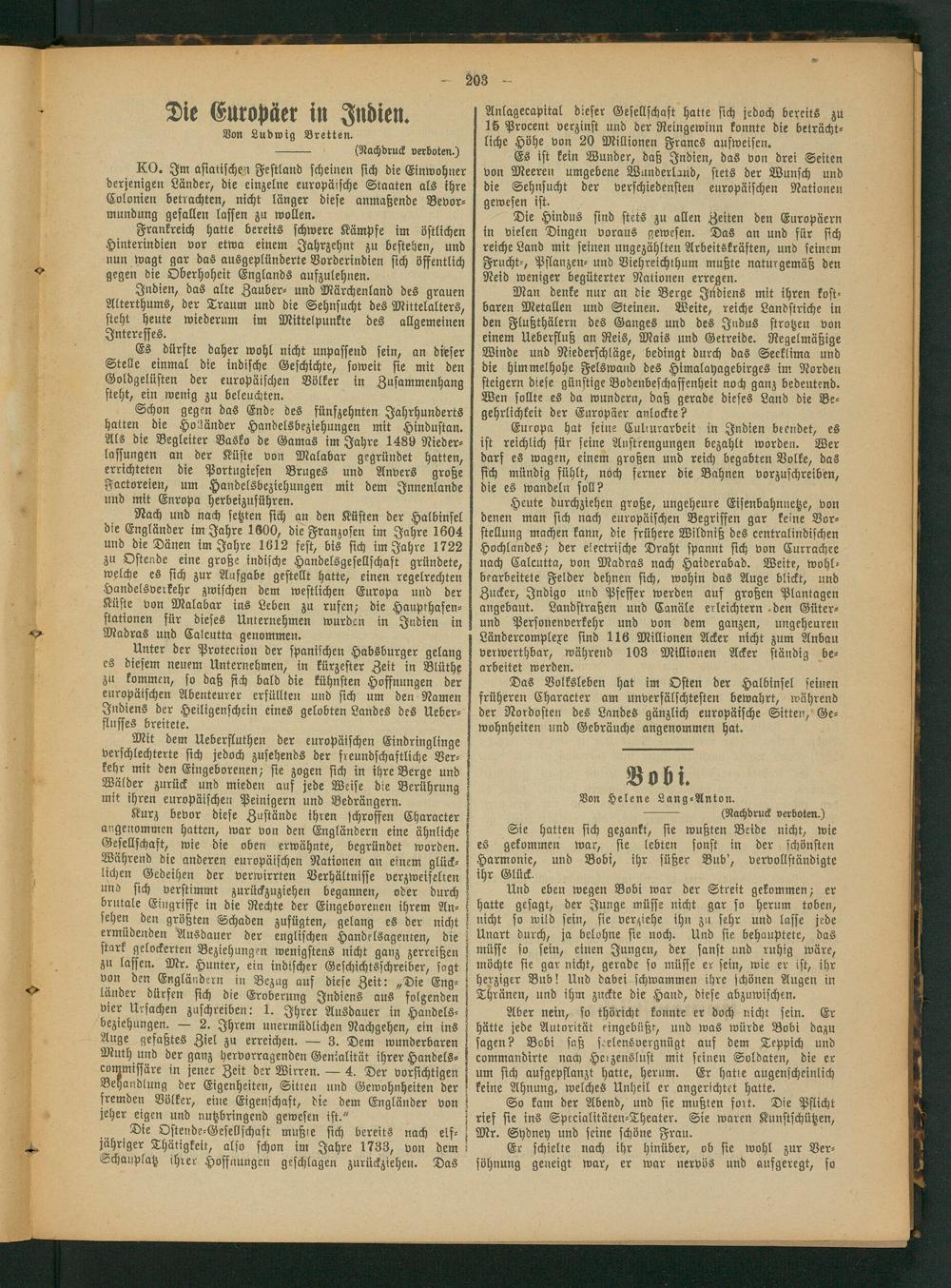 Indien, das alte Zauber- und Märchenland des grauen Alterthums, der Traum und die Sehnsucht des Mittelalters, steht heute wiederum im Mittelpunkte des allgemeinen Interesses.