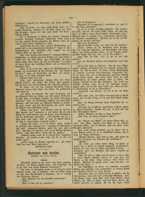 Ohne sich Zeit zu lassen, das Document zu lesen, setzte er seinen Namen darunter, worauf die junge Frau das Papier an sich nahm. Dann bestiegen beide wieder den Wagen. Während der ganzen Fahrt zeigte sich Frau von Bange sehr heiter. —