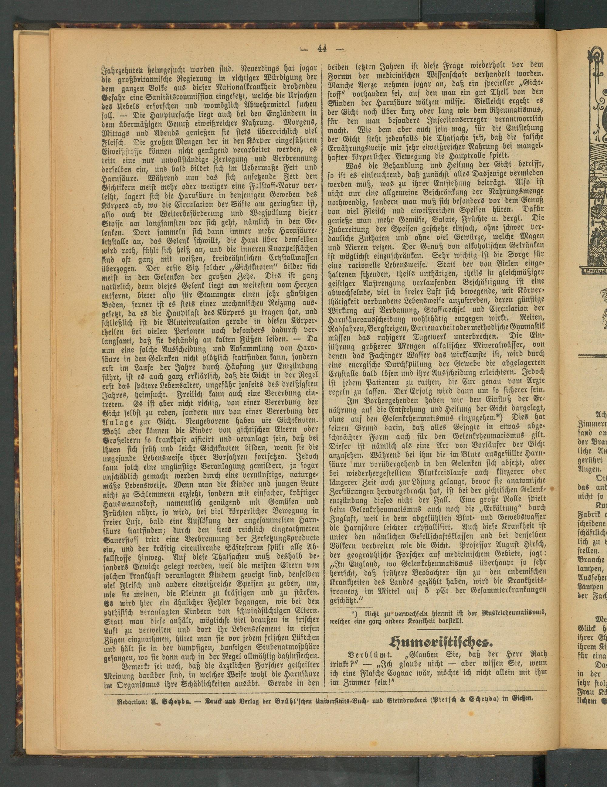 Kedactian: Ä. Echehda. — Druck und Berlag der Brühl'schen UniversitätS-Buch- und Steindruckerei (Pietsch & Scheyda) in Birßm.