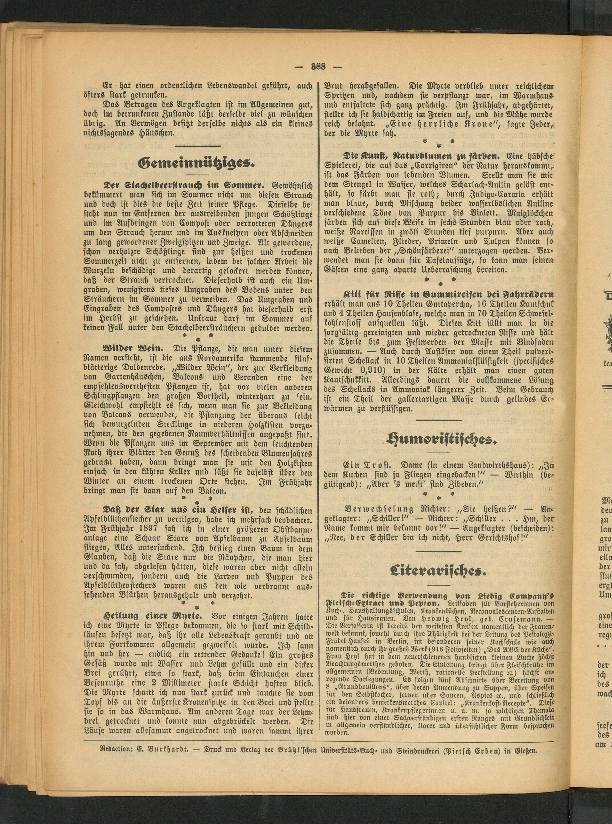Redaction: E. Burkhardt. — Druck und Verlag der Brühl'schen UniverfitätS-Buch- und Steindruckerei (Pietsch Erben) in Gießen.