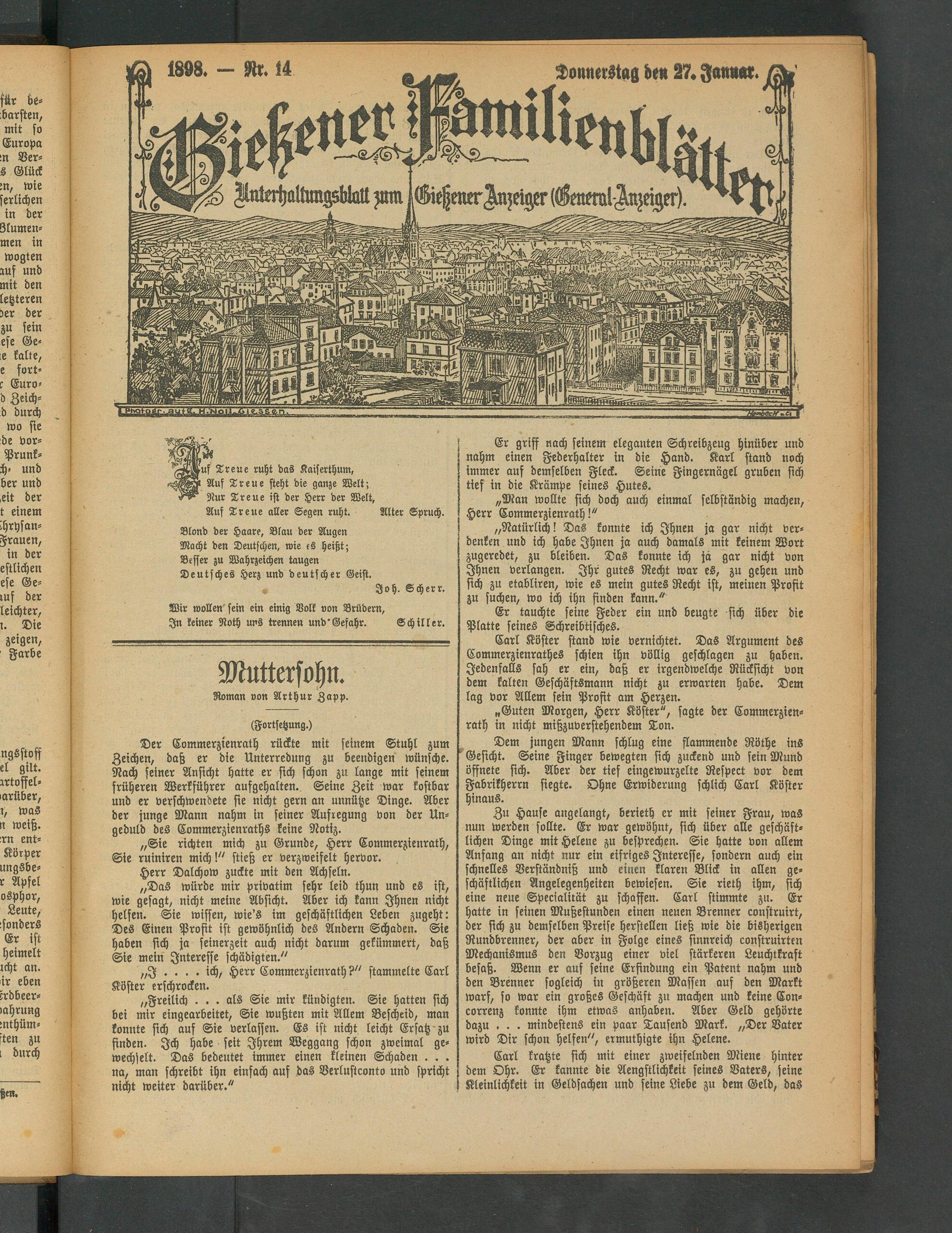 (?&Sruf Treue ruht das Kaiserthum, Auf Treue steht die ganze Welt; Nur Treue ist der Herr der Welt, Auf Treue aller Segen ruht. Alter Spruch.