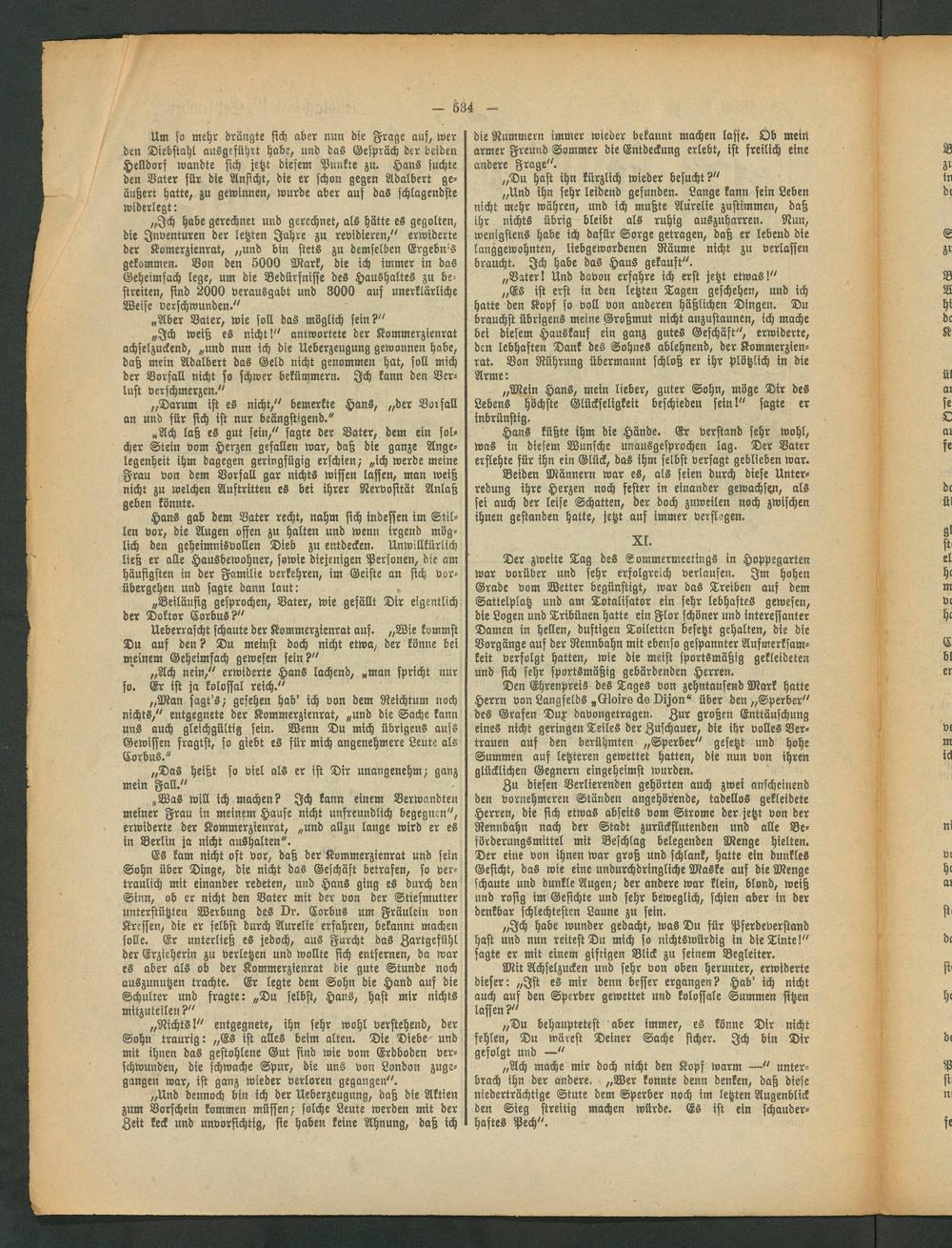 Zu diesen Verlierenden gehörten auch zwei anscheinend den vornehmeren Stünden angehörende, tadellos gekleidete Herren, die sich etwas abseits vom Strome der jetzt von der Rennbahn nach der Stadt zurückflutenden und alle Beförderungsmittel mit Beschlag belegenden Menge hielten. Der eine von ihnen war groß und schlank, hatte ein dunkles Gesicht, das wie eine undurchdringliche Maske auf die Menge schaute und dunkle Augen/ der andere war klein, blond, weiß und rosig im Gesichte und sehr beweglich, schien aber in der denkbar schlechtesten Laune zu fein.