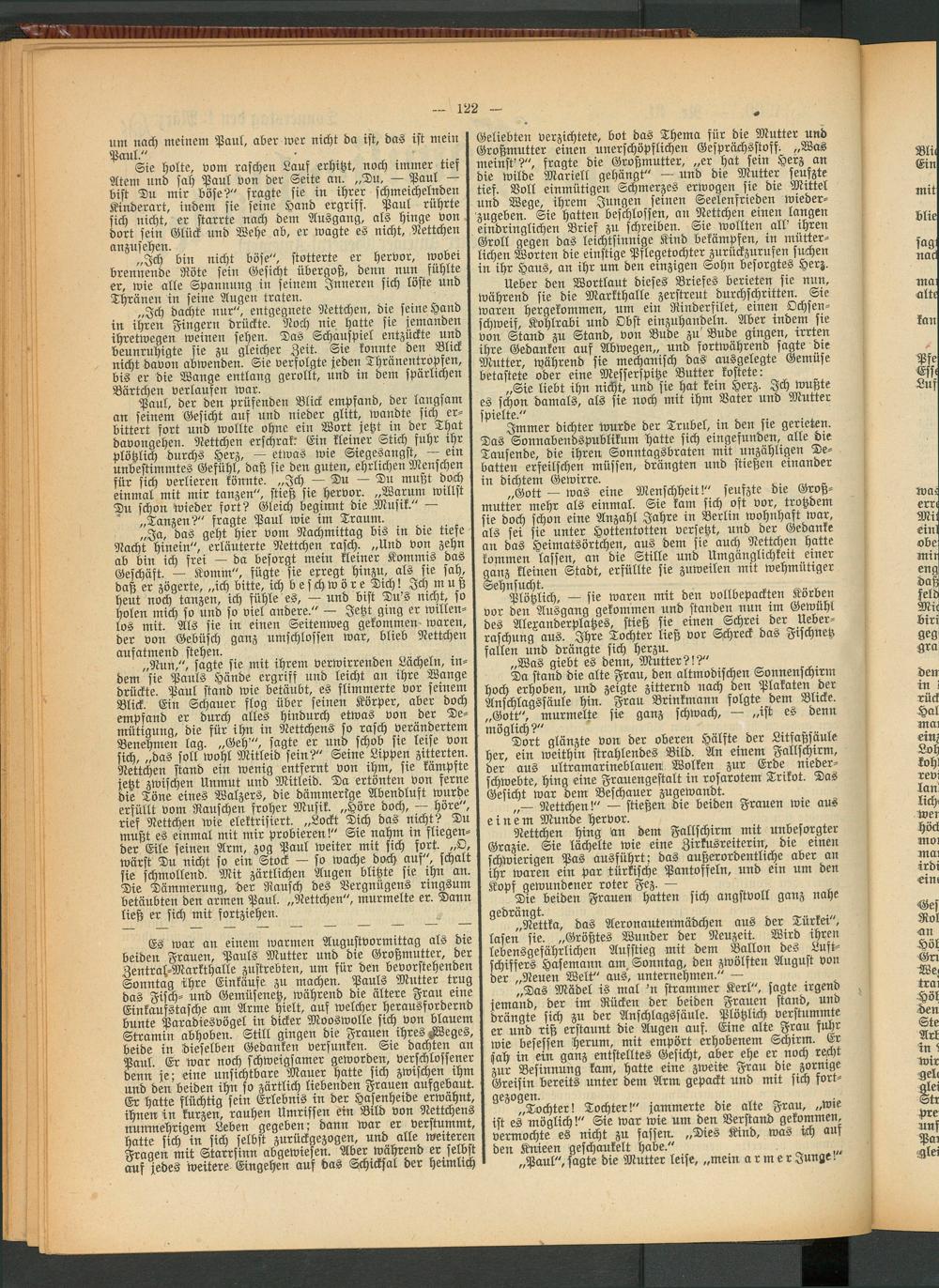 Zentral-Markthalle zustrebten, um für ben bevorstehenden I schiffers Hafemann am, Sonntag, den zwölften A g s Sonntag ihre Einkäufe zu wachem Pauls Miltter trug der "Neuen Welt aus, nnternelM