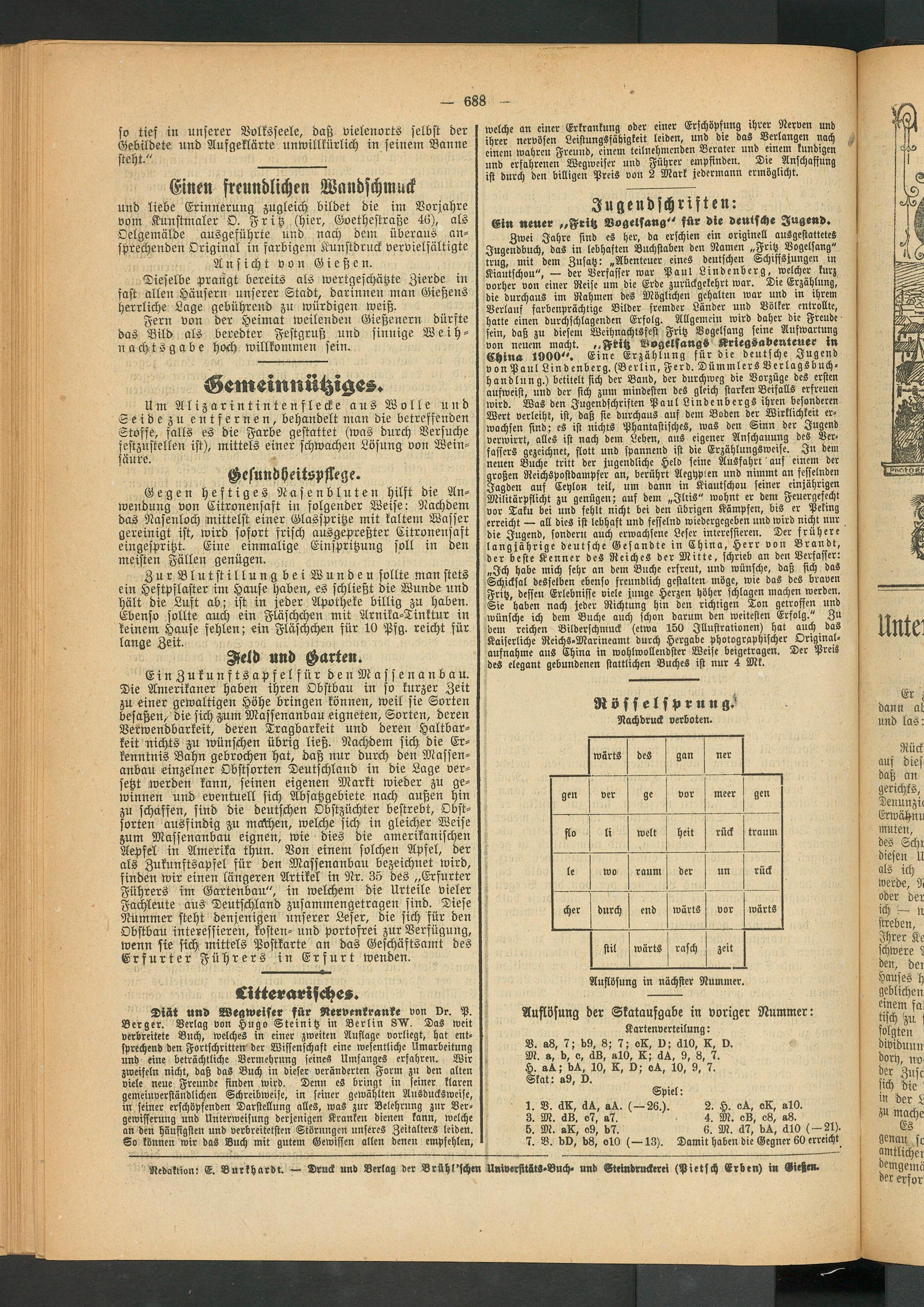 Redaktion: E. Burkhardt. — Druck und Verlag der Brühl'schen UuiverfitätS-Buch. und Steindruckerei (Pietsch Erben) in Gießen.