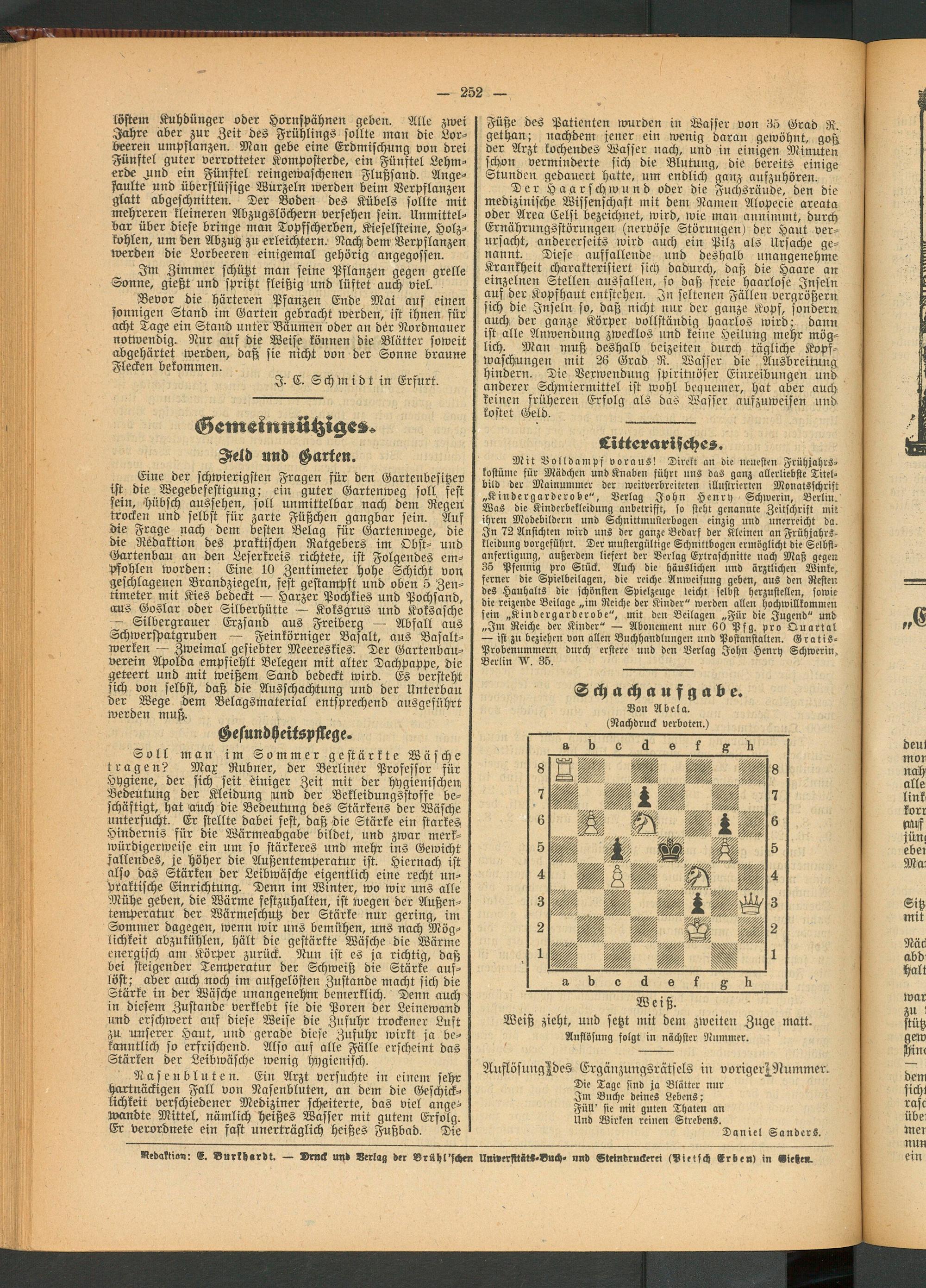 Weiß zieht, uub setzt mit dem zweiten Zuge matt. Auflösung folgt in nächster Nummer.