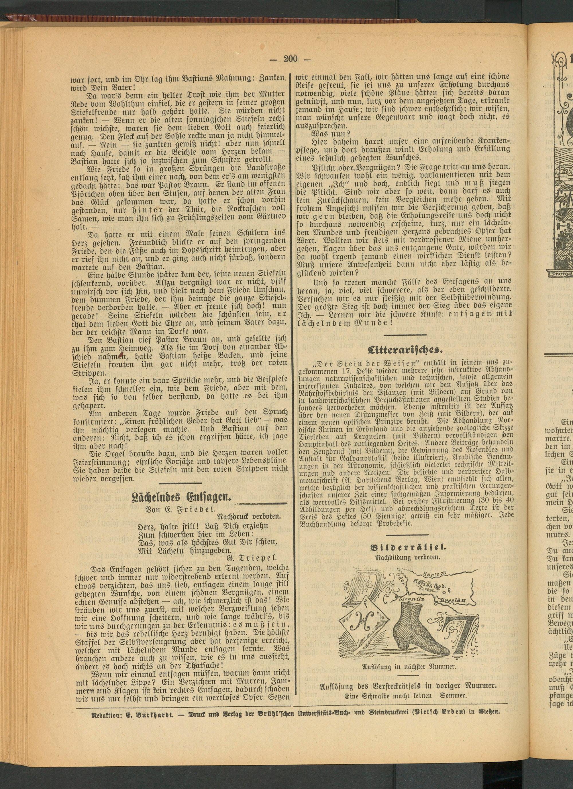 Redaktion: <8. Burkhardt. — Druck und »erlag der Brühl'schen UniverfitätS-Buch- und Steindruckerei (Pietsch Srbens in «ießeu.