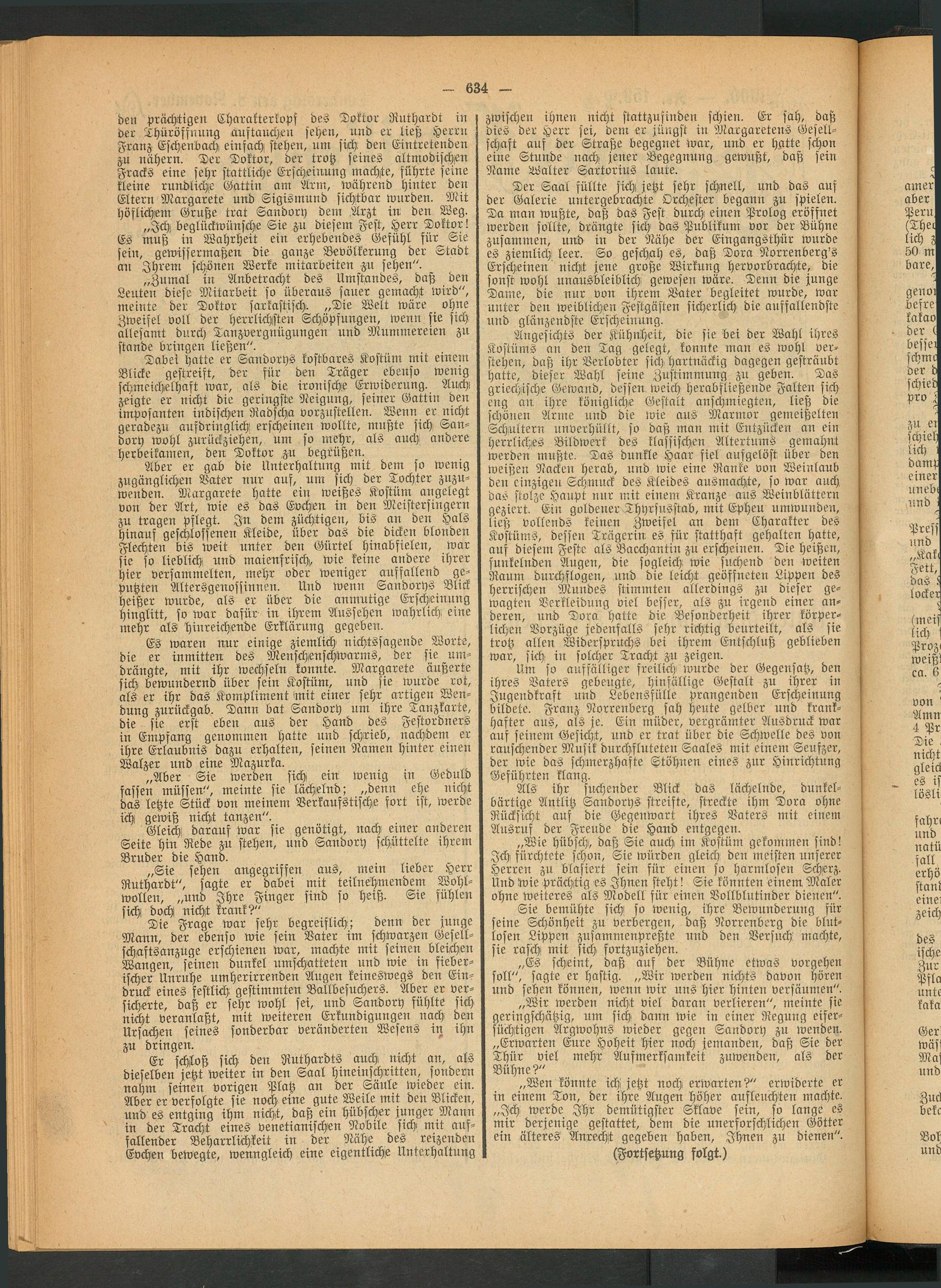 Es waren nur einige ziemlich nichtssagende Worte, die er inmitten des Menschenschwarms, der sie umdrängte, mit ihr wechseln konnte. Margarete äußerte sich bewundernd über sein Kostüm, und sie wurde rot, als er ihr das Kompliment mit einer sehr artigen Wendung zurückgab. Dann bat Sandory um ihre Tanzkarte, die sie erst eben aus der Hand des Festordners in Empfang genommen hatte und schrieb, nachdem er ihre Erlaubnis dazu erhalten, seinen Namen hinter einen Walzer und eine Mazurka.