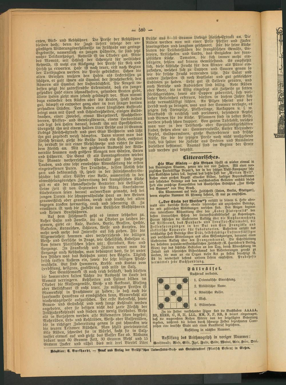 tauben und eine sehr erwünschte Abwechselung die ersten I Hi« Mac Kinley — Hie Bryan schallt es wieder einmal IN schichte fast aller Völker eine Rolle, namentlich tn I 8 sen giimM aktueller Bilder, farbiger Reproduktionen
