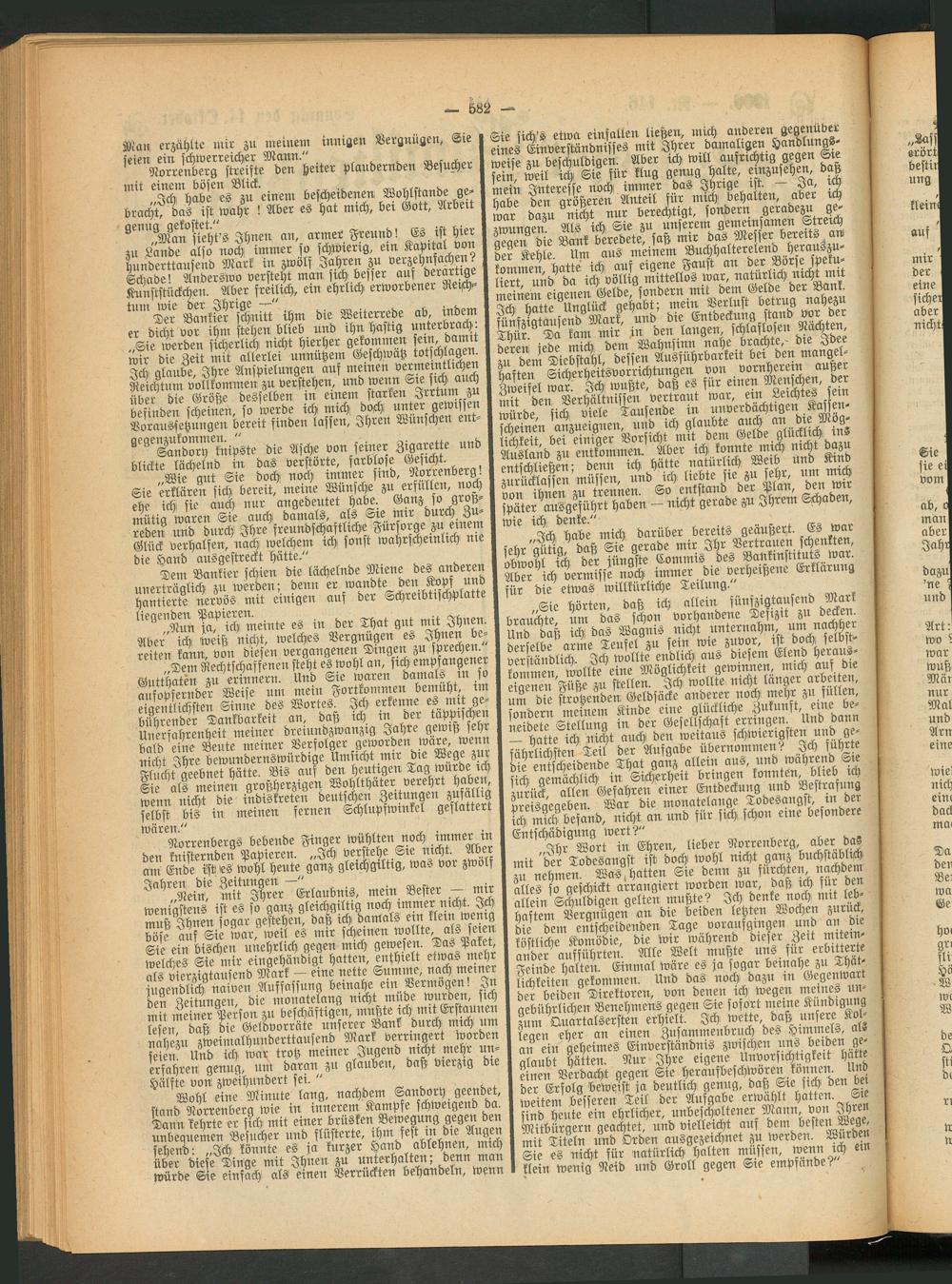 Wohl eine Minute lang, nachdem Sandory geendet, stand Norrenberg wie in innerem Kampfe schweigend da. Dann kebrte er sich mit einer brüsken Bewegung gegen den SÄ sÄ« und werte, WW Mg sehend: „Ich könnte es ja kurzer Hand ablehnen, mich über diese Dinge mit Ihnen zu unterhalten ',de"n man würde SW einfach als einen Verrückten behandeln, wenn