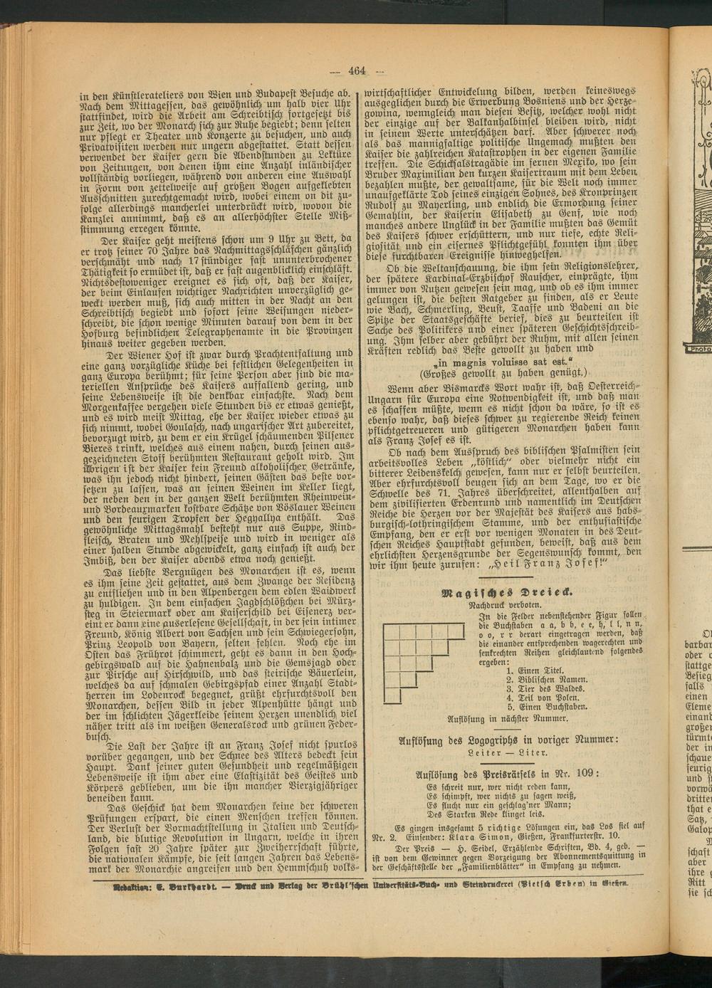Auflösung des Preisrätsels in Nr. 109: