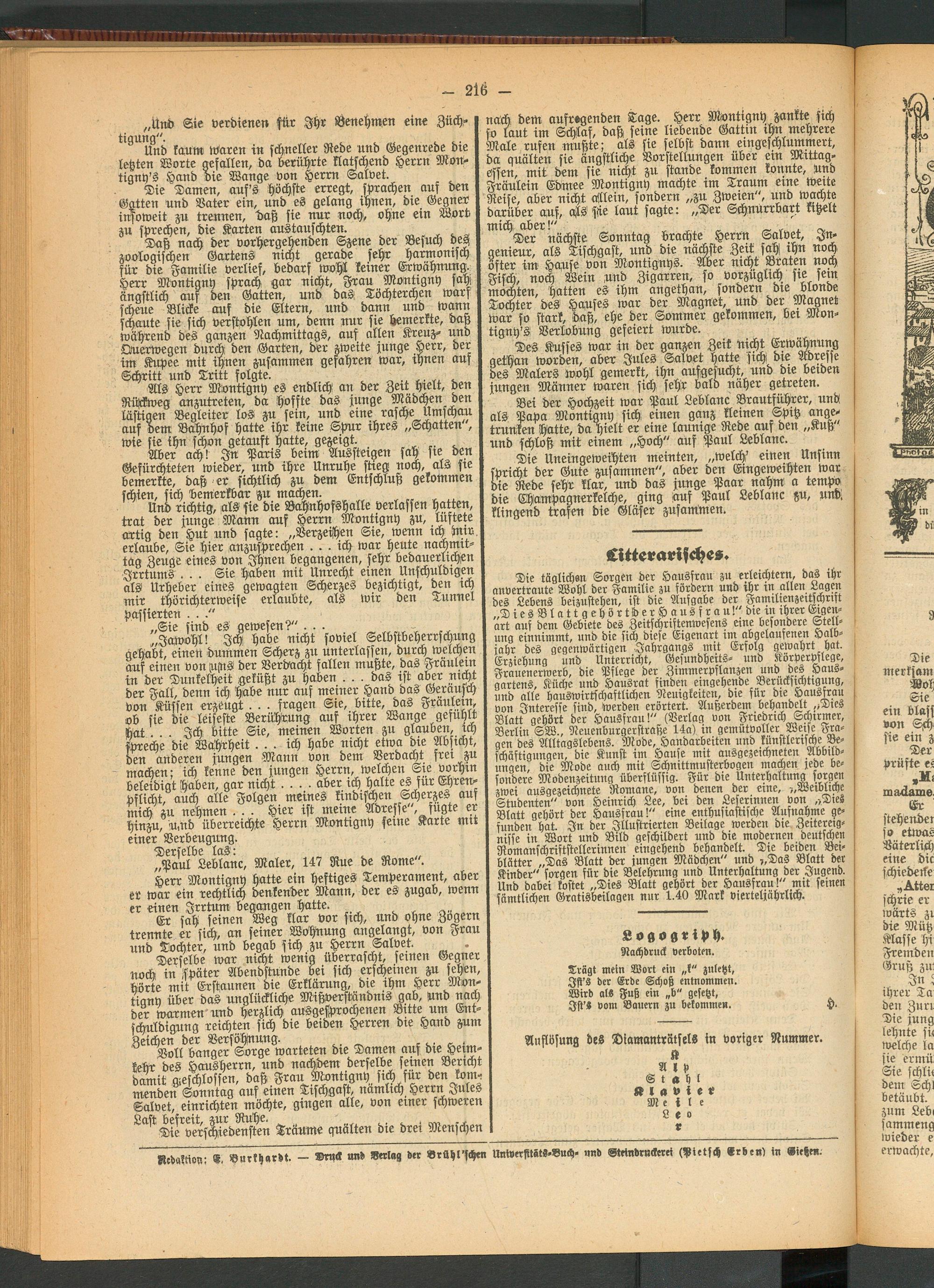 Kedaklion: E. Burkhardt. — Druck und «erlag der Brühl'schen UniversitätS-Buch. und Gtrindruckerei (Pietsch erben) in «ließen.