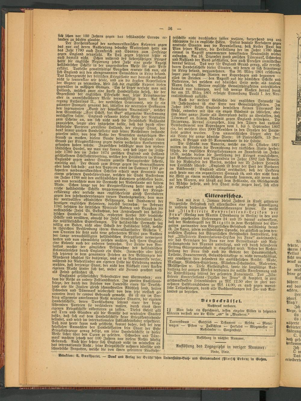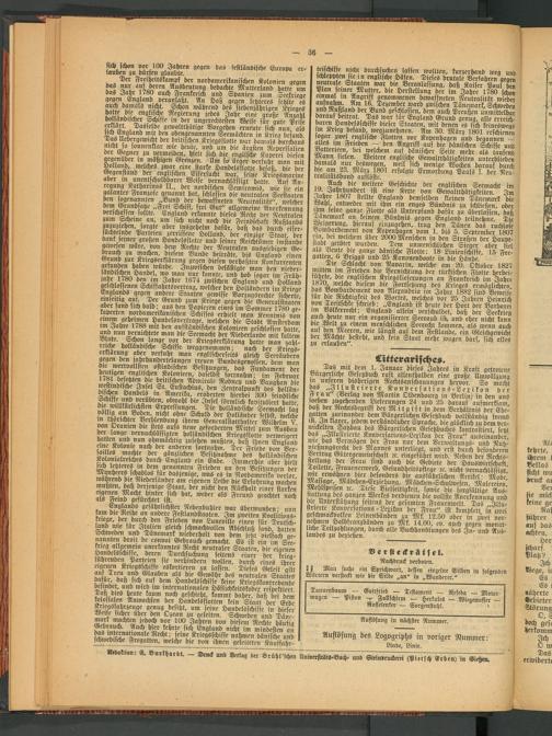 Redaktion. E. Burkhardt. Druck und Verlag der Brühl'schen Universitäts-Buch- und Steindruckerei (Pietsch Erben) in Gießen.