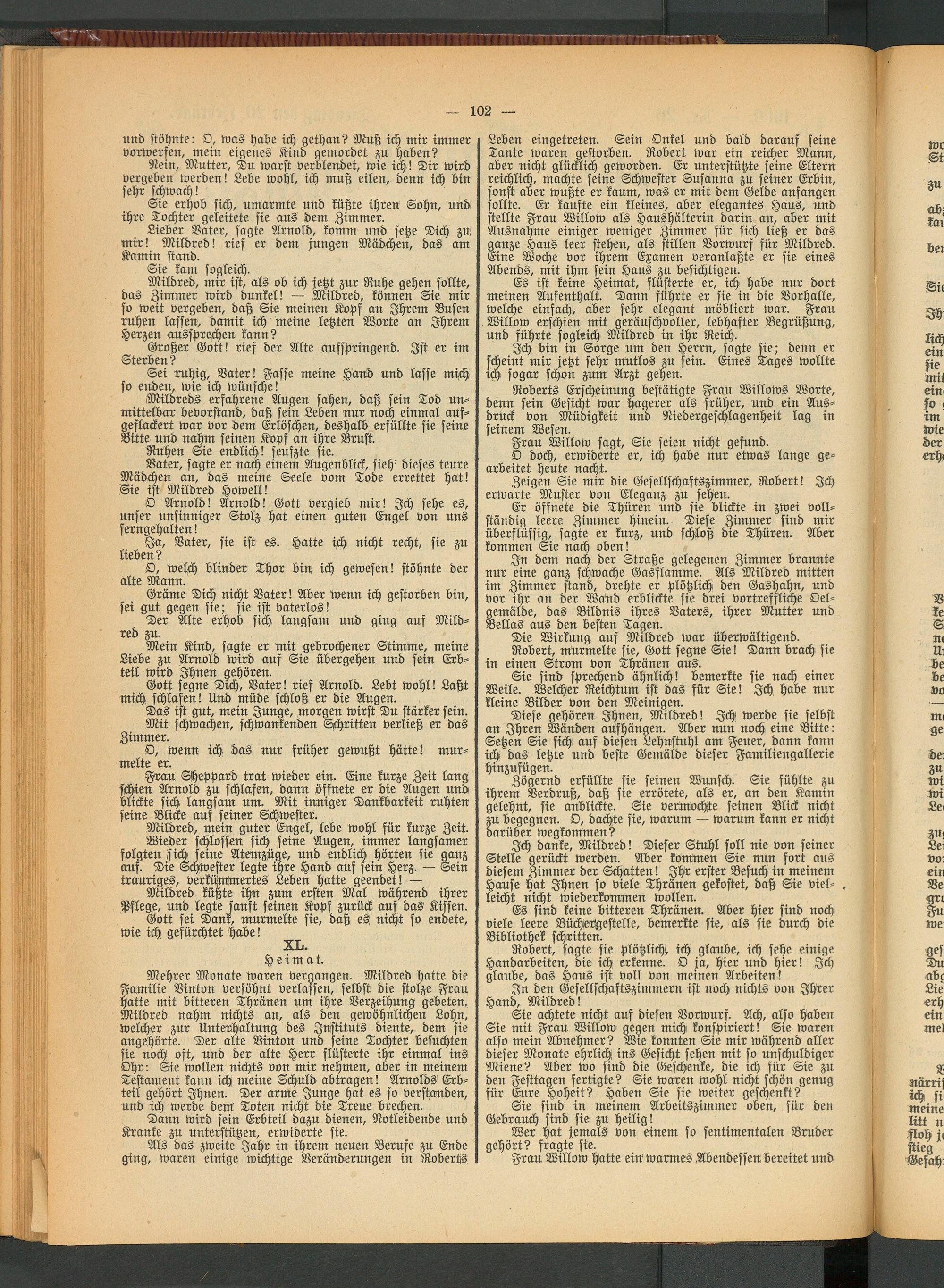 Frau Sheppard trat wieder ein. Eine kurze Zeit lang schien, Arnold zu schlafen, dann öffnete er die Augen und blickte sich langsam um. Mit inniger Dankbarkeit ruhten seine Blicke auf seiner Schwester.